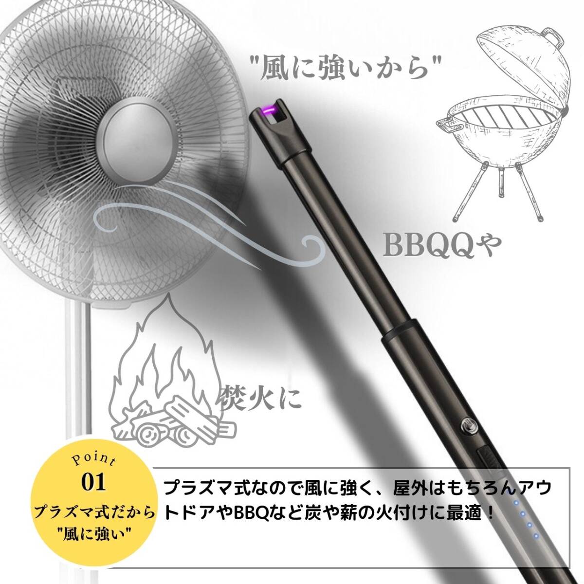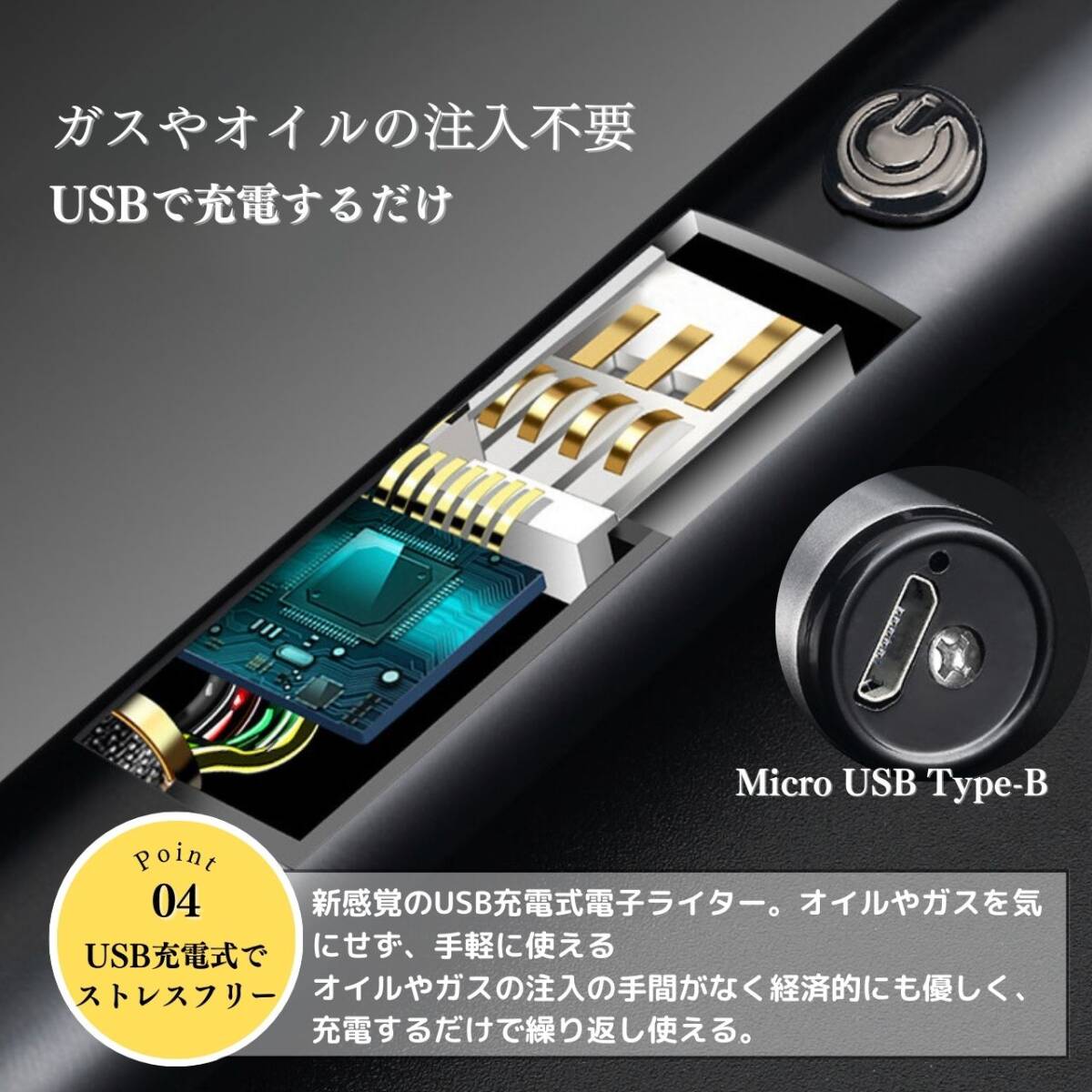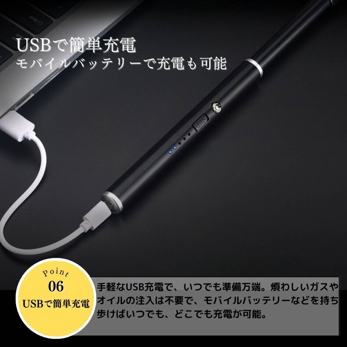 【カラー】タイトル、商品画像1枚目をご確認ください。【オイル・ガス不要で経済的】プラズマライターは電気を使用し、ガスやオイルの購入が不要なため経済的。手軽に入手できる電気を利用しています。【画期的な電撃着火】溶接などで使われるアーク放電によるプラズマを利用した画期的なライター。瞬時に着火して便利に使用できます。【風に強い炎がない着火方法】プラズマライターは炎が出ないため、風の影響を受けずにスマートに着火できます。アウトドアやレジャーにも最適です。【繰り返し使用可能なUSB充電】付属のUSBケーブルを使用して、自宅やオフィスのパソコンから手軽に充電できます。繰り返し使用が可能で、経済的で環境にも優しいです。【安全ロック機能付き】安全ロックをスライドさせて解除し、電源ボタンを押して電源を入れます。使用後は必ず安全ロックをロックしてください。【使用方法】☆電源スイッチの入れ方☆安全ロックをスライドさせ解除し、電源ボタンを押して電源を入れます。使用後は必ず安全ロックをロックしてください。☆充電方法☆付属のUSBケーブルを使用して、パソコンなどのUSBポートへ接続し充電を行ってください。本体の底面の接続口に差し込み充電します。電池残量は約20%ごとに点灯致します。プラズマライターは燃料を気にすることなく、電気を使って便利に着火できる画期的なアイテムです。経済的で風に強い着火方法をぜひお試しください。【注意事項】・海外製品のため多少の傷や汚れ等ある場合がございます。・送料の都合上箱なし簡易包装での発送となります。コメントなしでの即購入可能です。おまとめ買いでお値引きさせていただきます。お気軽にコメントください。BLACK ブラック 黒 SILVER シルバー 銀 アウトドア キャンプ 便利 簡単
