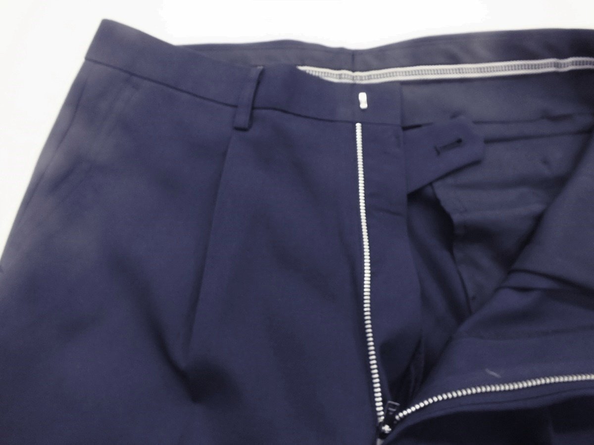特色 ・ワンタック仕様で楽々 ・厳選されたクオリティの高い素材使用 ・シャツ滑り止め付き アイテム:秋冬ワンタッグパンツ ウエストサイズ 94cm ワンタッグ仕様 色:ネービー系 柄:無地感覚 表素材:ポリエステル50/毛50 裏素材:ポリエステル100 縫製:日本 詳細な寸法 ウエストサイズ:94cm 股上28.5cm/渡幅36.7cm/膝幅26.5cm/裾幅24.5cm/股下87cm | ||||