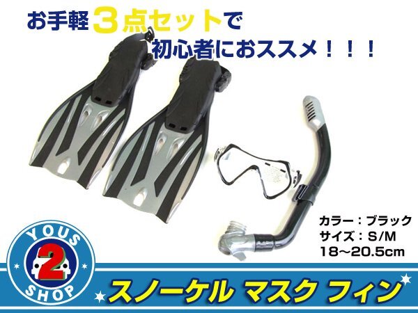 送料無料 スノーケル&マスク&フィンセット ブラック 子供用 S/M