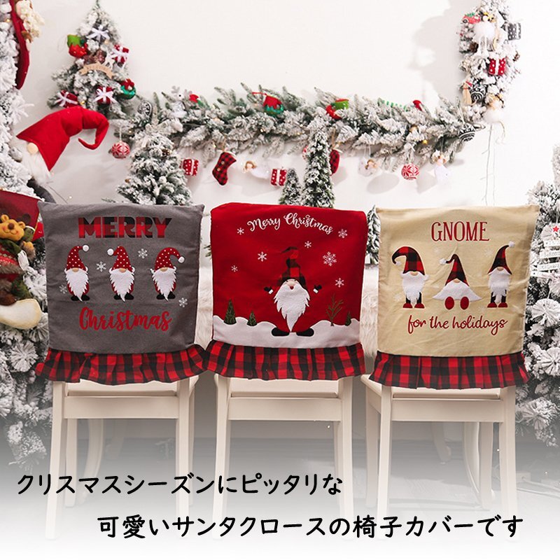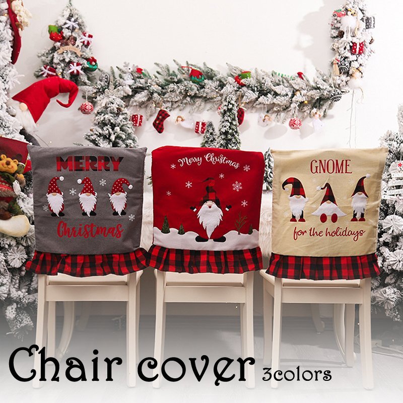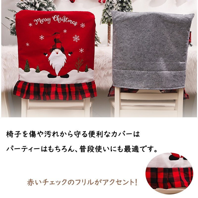 【C10831】椅子カバー レッド クリスマス ホリデー サンタ チェック merry Christmas 雪の結晶 カバー 背もたれ チェア 椅子 インテリア