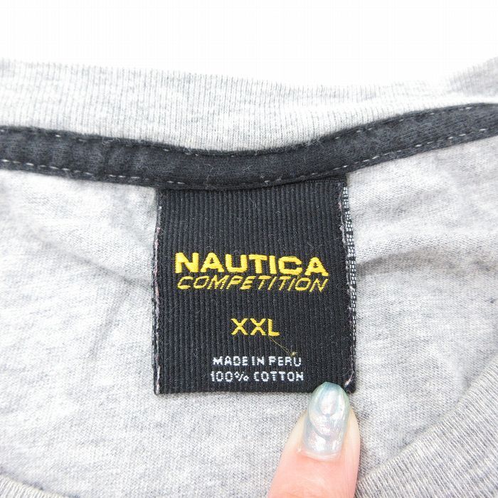【商品名】 XL★古着 ノーティカ 長袖 ブランド Tシャツ メンズ コンペティション ビッグロゴ 大きいサイズ コットン クルーネック グレー 霜降り