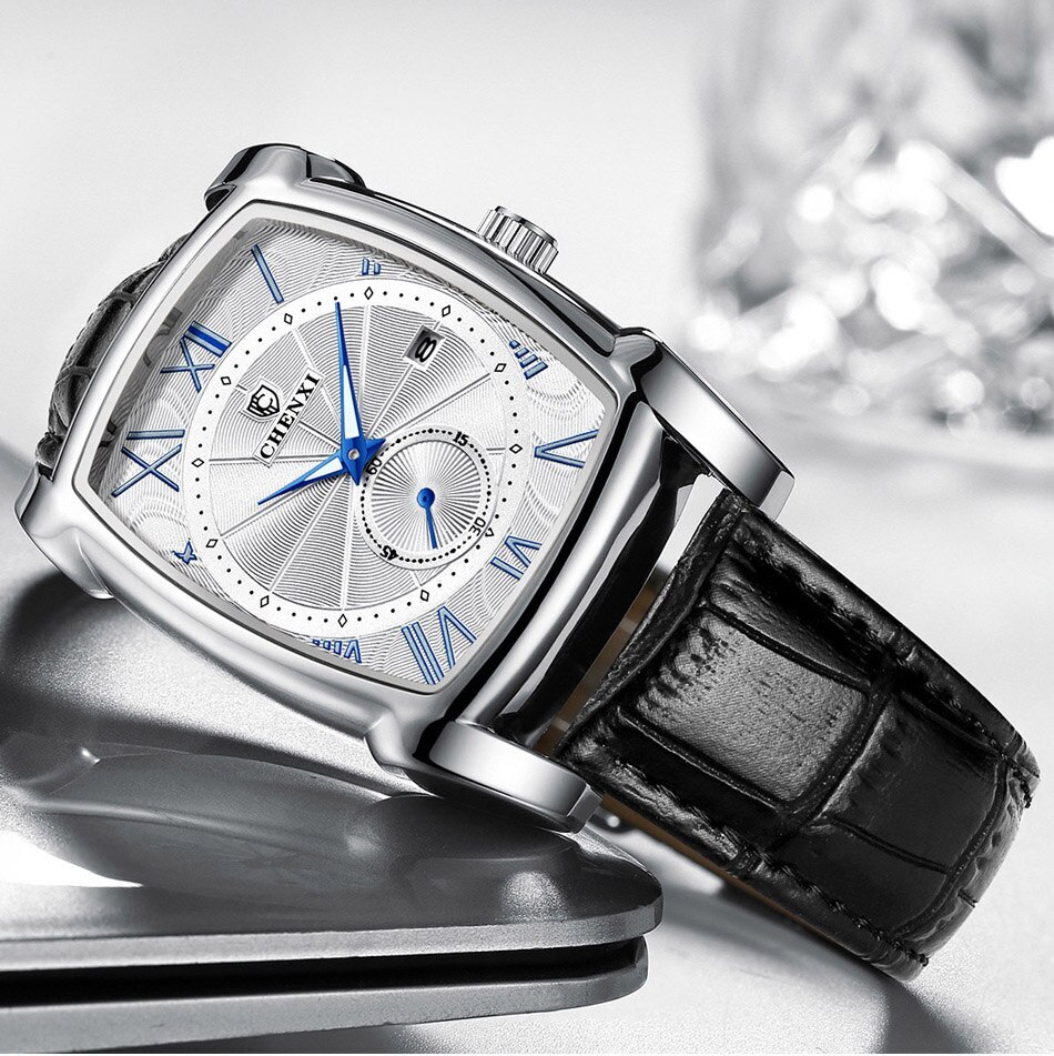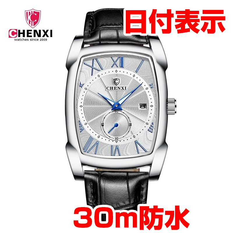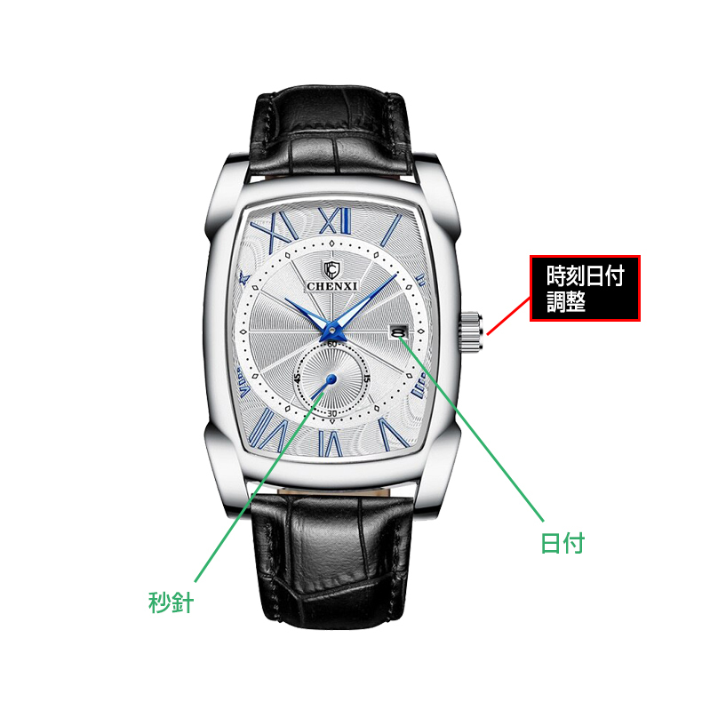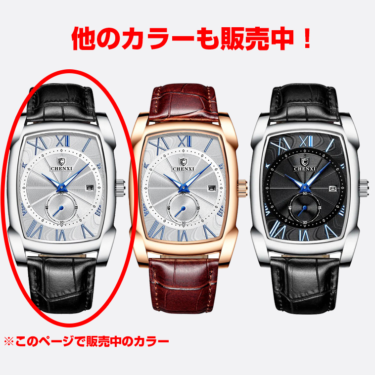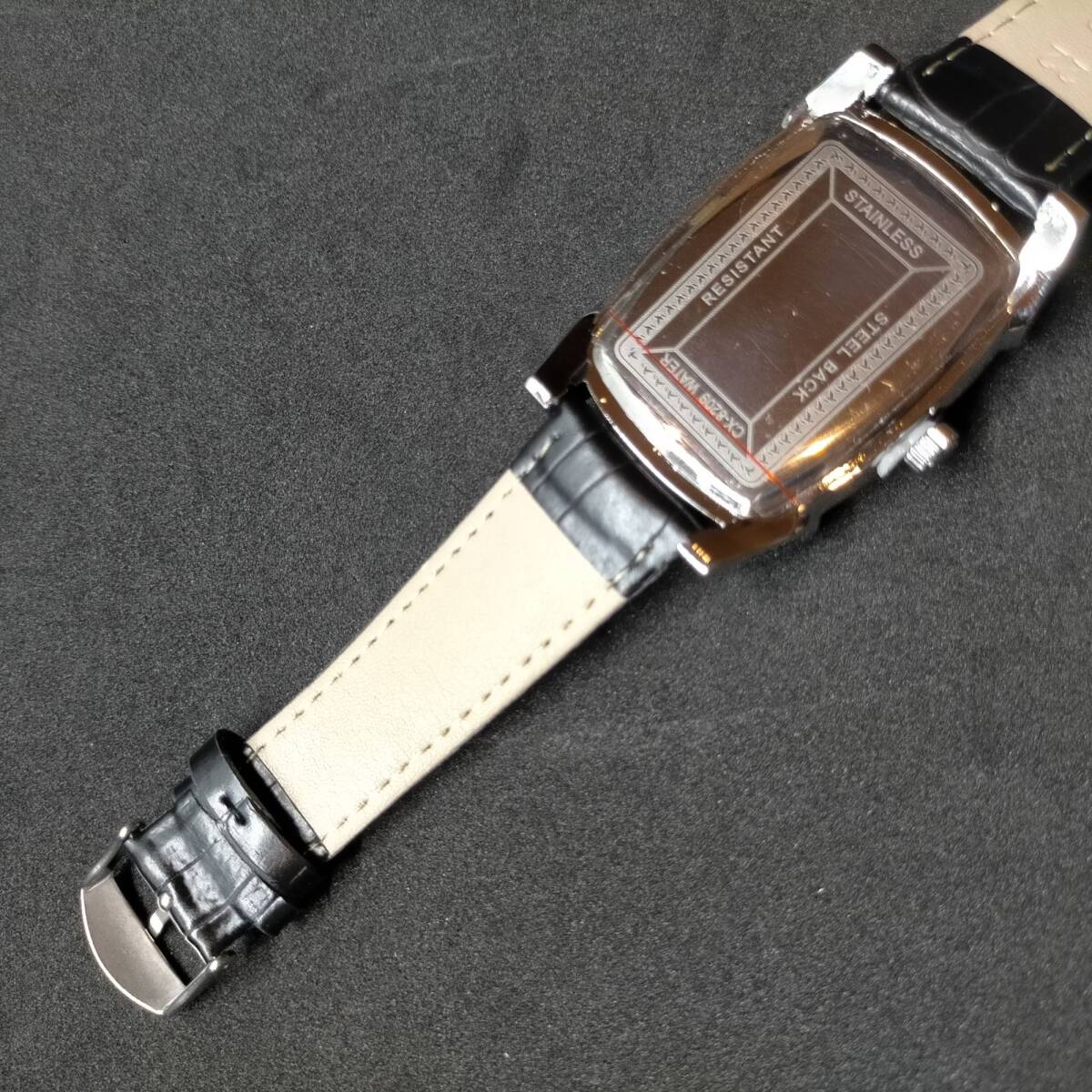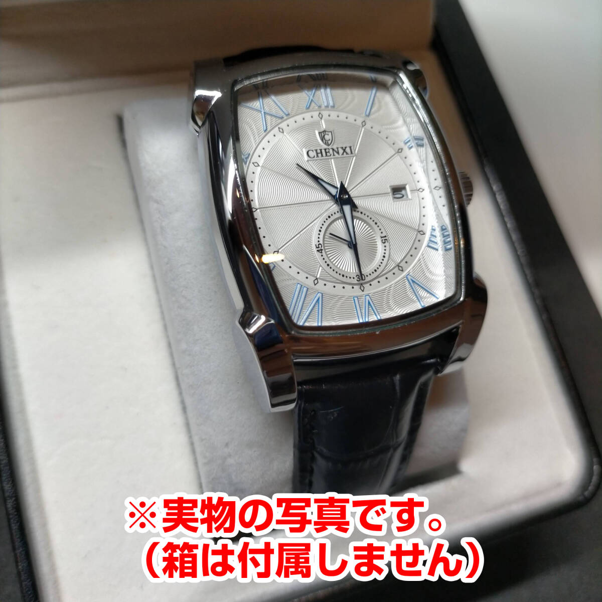 新品レクタンギュラー角型アナログ腕時計防水日付カレンダー本革レザーブラック黒シルバー銀ホワイト白ビジネスカジュアル スクウェア