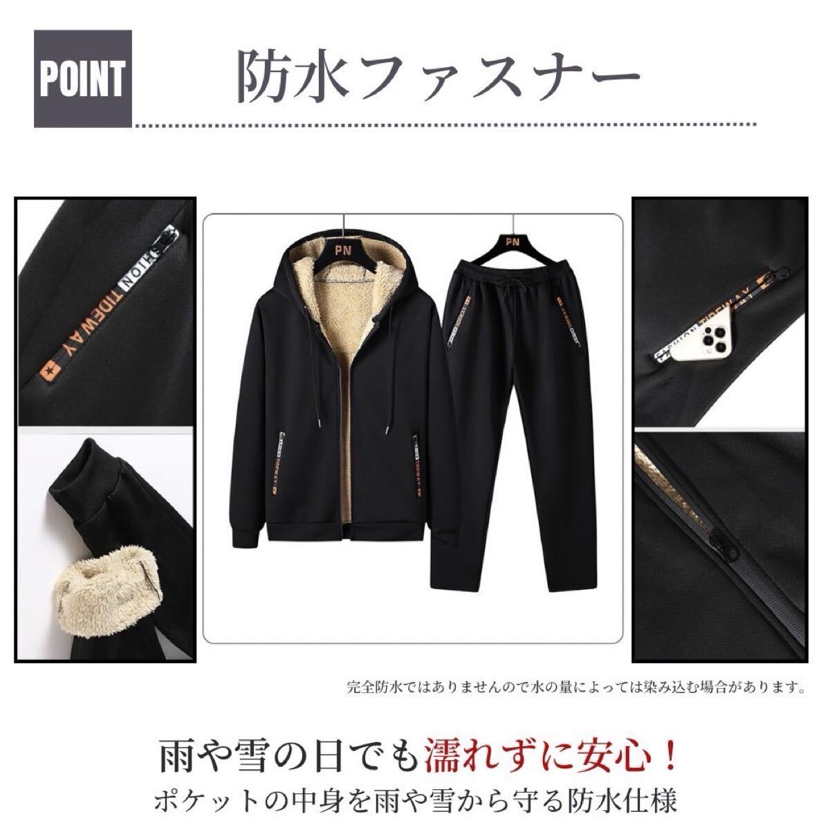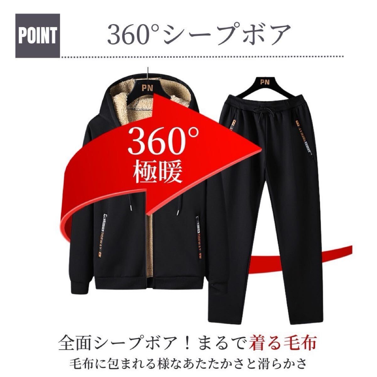 メンズ 裏起毛 裏ボア 上下セット ジャージ スウェット セットアップ ジップアップ パーカー フード付き 防寒 防風