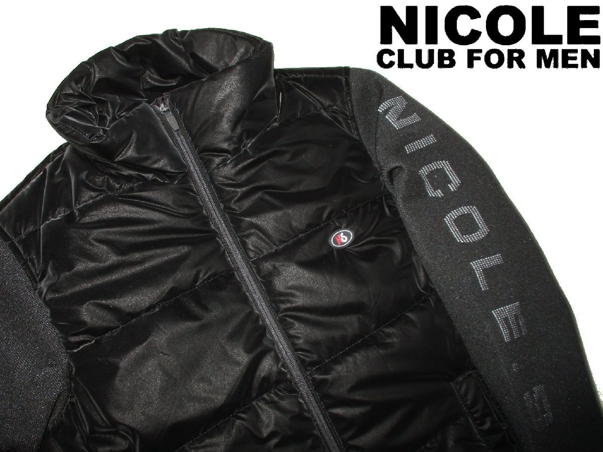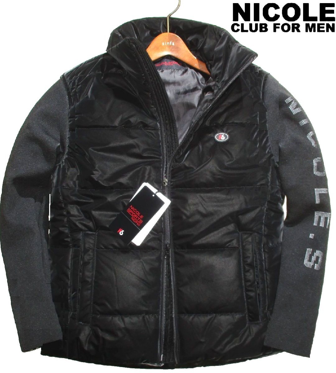 新品 冬物 L 定価2.4万▼ ニコル NICOLE CLUB FOR MEN ゴルフ ▼ ダウン調 中綿入り ブルゾン 袖ニット 防風 蓄熱 ジャケット メンズ 48 黒