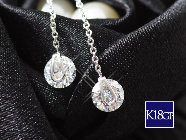 新品/ピアス/K18GP/アメリカン/ダイヤ/ロング/シルバー/18金/レディース/ホワイトゴールド/両耳/ロング/チェーン/揺れる/CZ/1.5ct