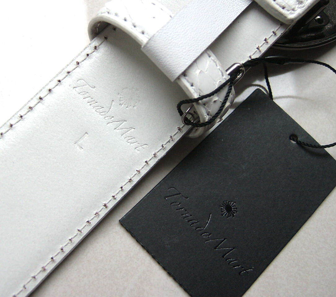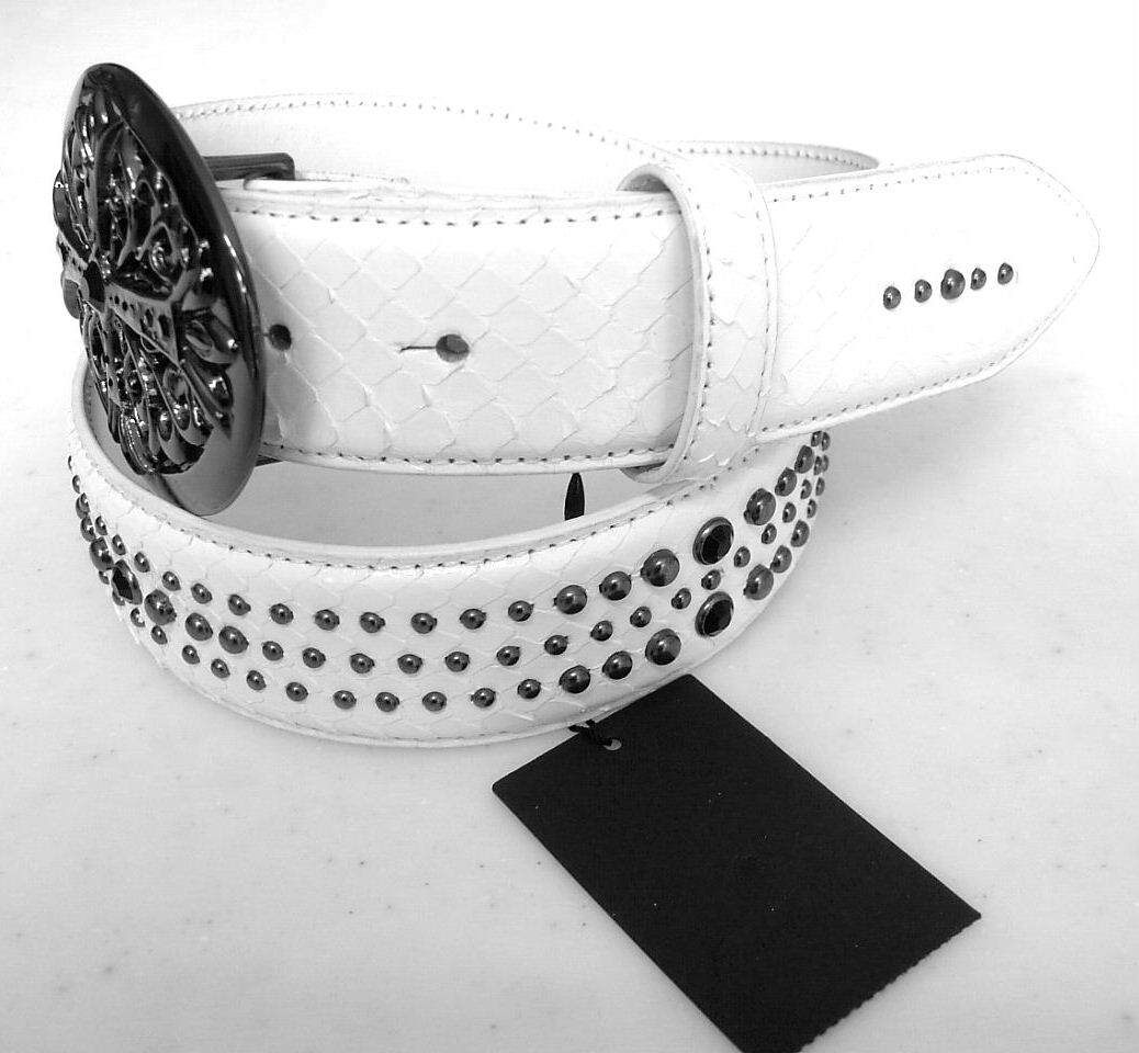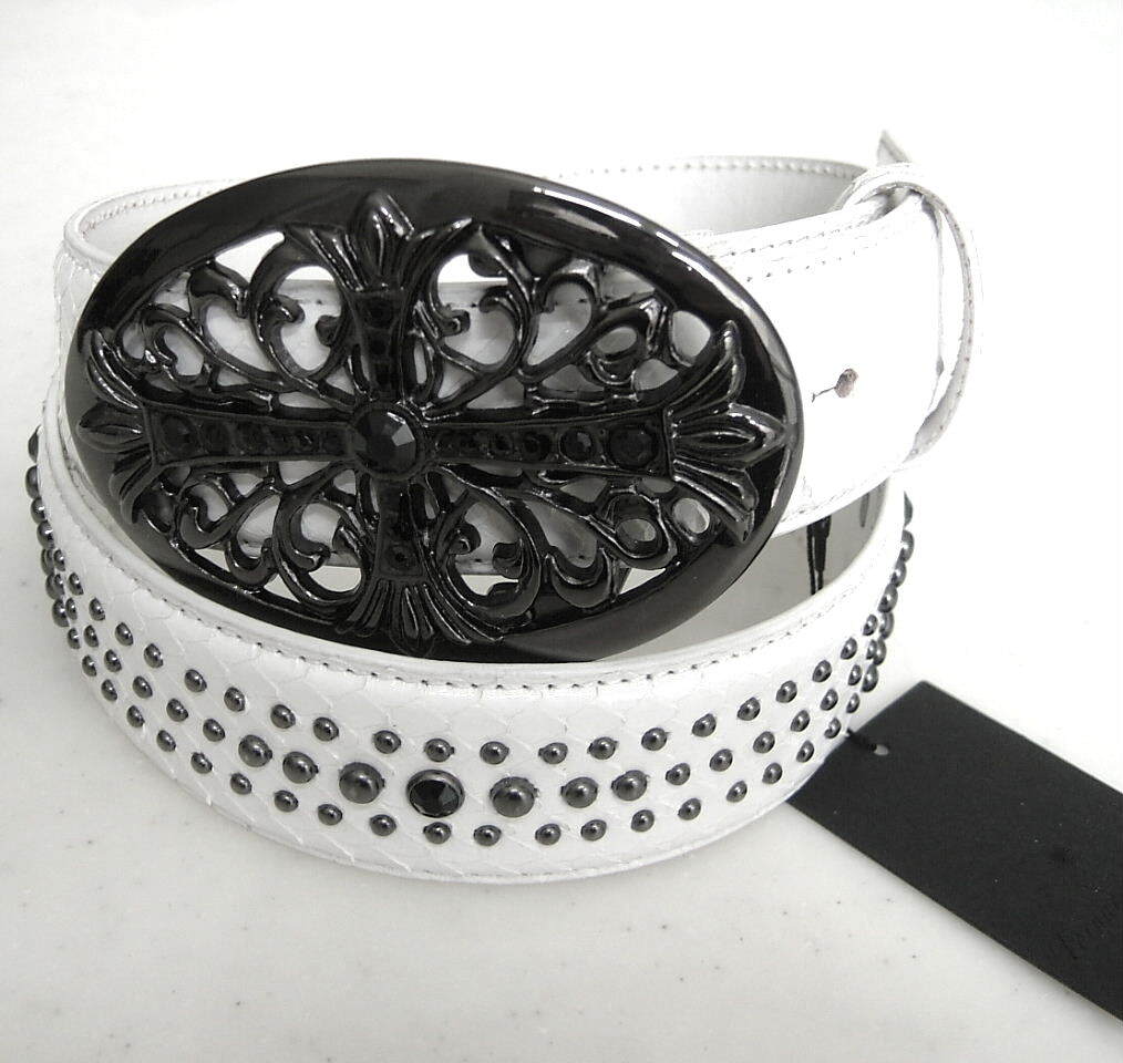 新品 トルネードマート TORNADO MART オーバルTOPスタッズスネークベルト 白ホワイト L 本革レザー 163