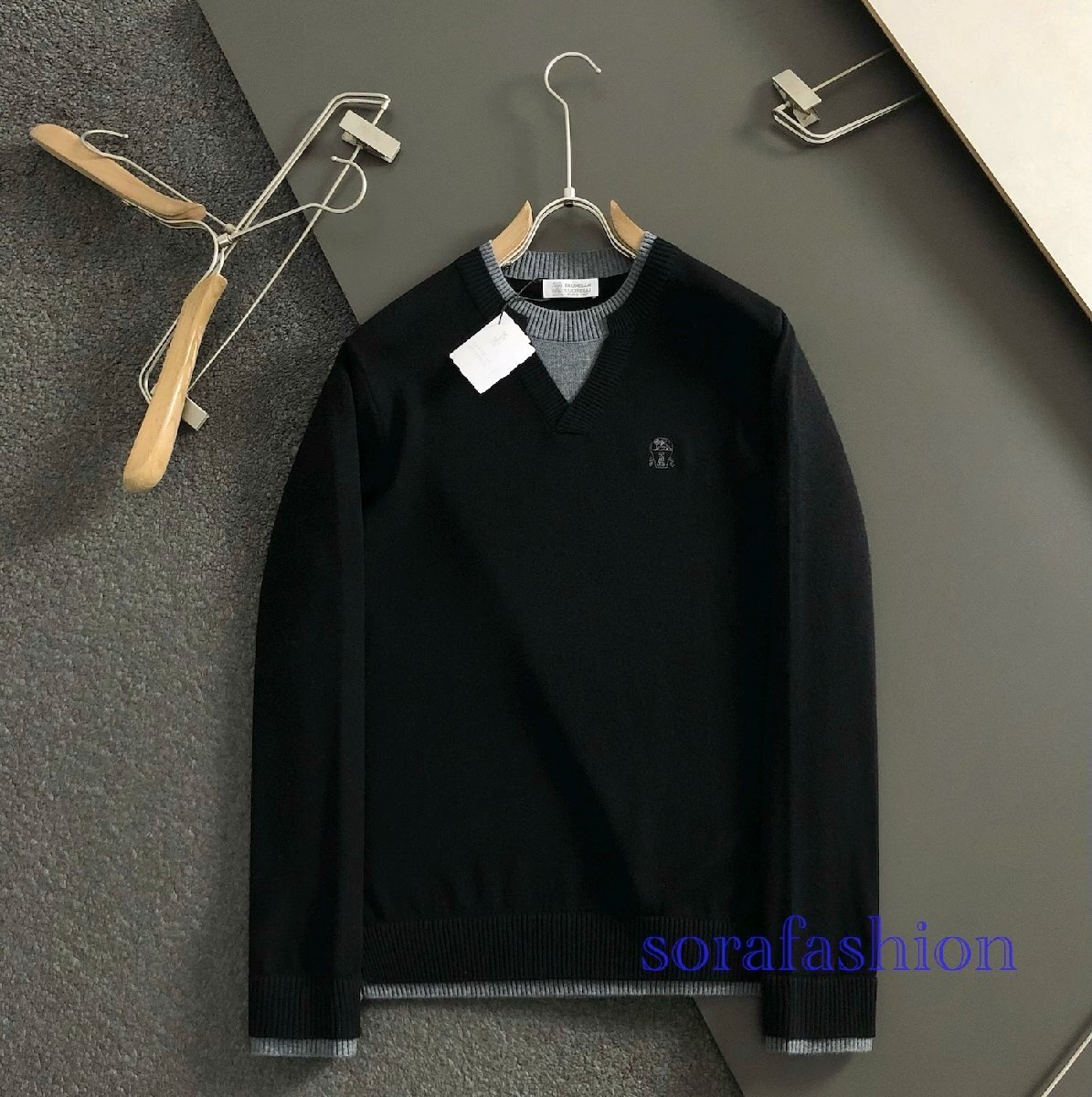 BRUNELLO CUCINELLI ブルネロ クチネリ メンズニットT-シャツ ニットセーター Lサイズ トップス 紳士服 クルーネック 丸首 秋冬物