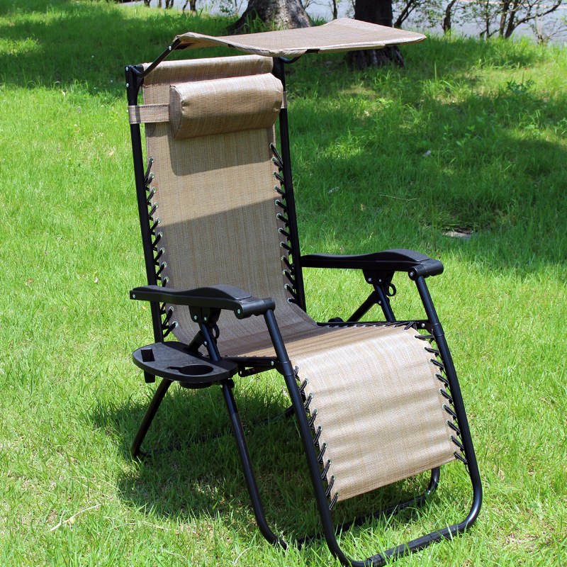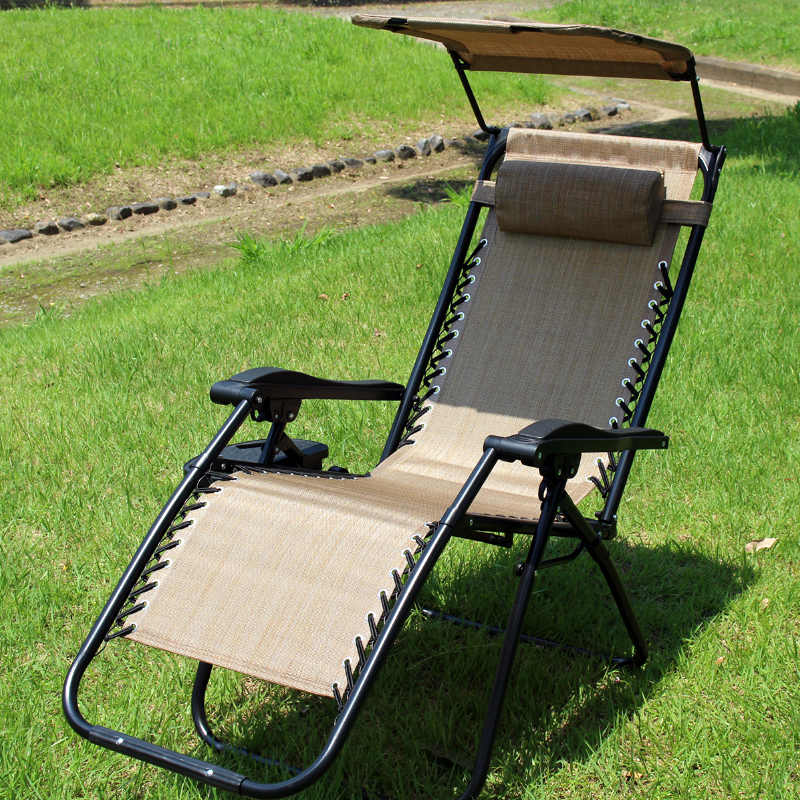 ★北米ウォールマート発★フォールディング★リクライニングチェア★無段階角度調整★屋根&トレー付★ヘザーベージュ★ビーチチェア★ | |||