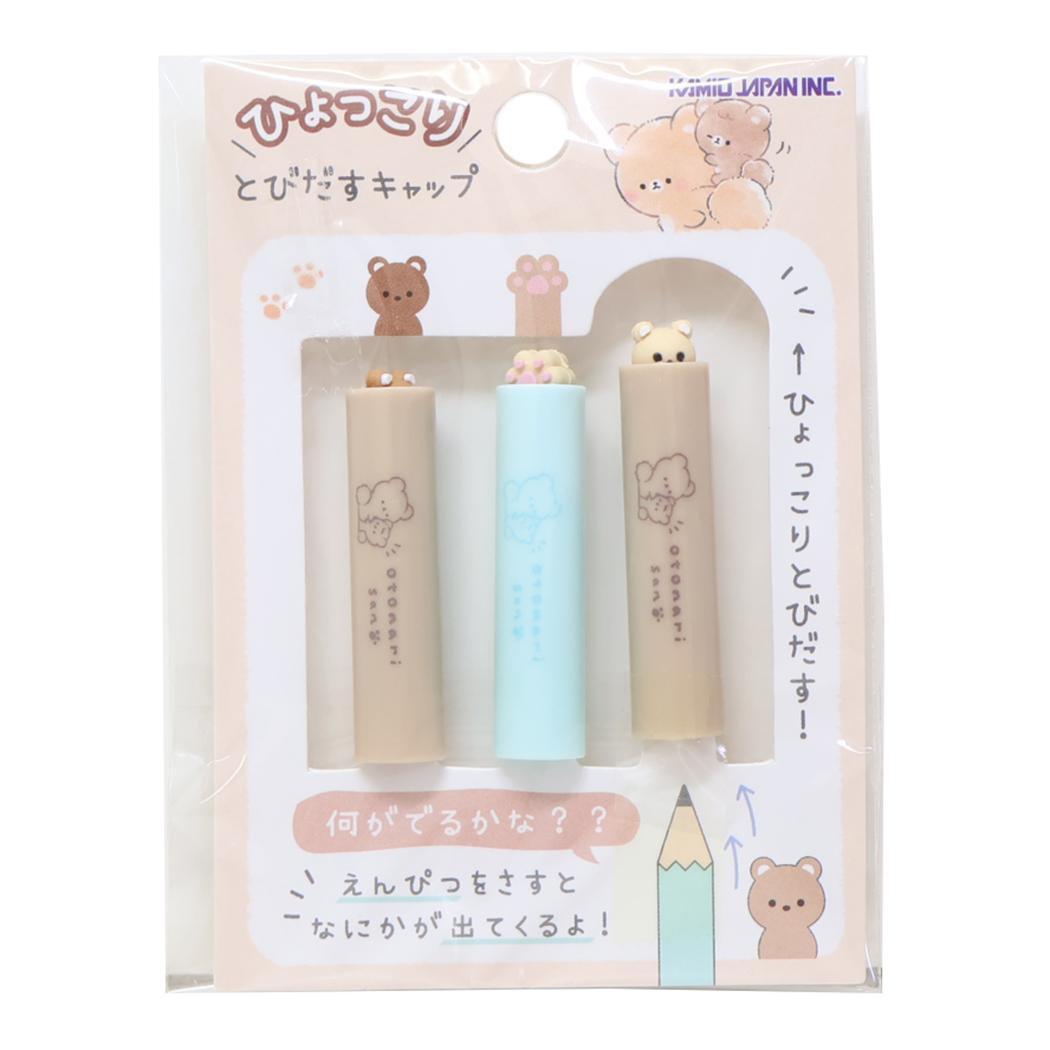 鉛筆キャップ ひょっこりとびだすキャップ 3本セット おとなりさん カミオジャパン 新学期準備文具 かわいい グッズ