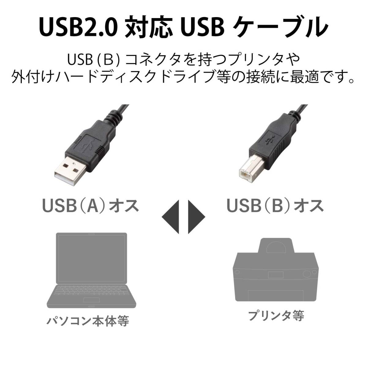 エレコム RoHS指令準拠&環境配慮パッケージ エコUSBケーブル USB2.0 A-Bタイプ 2m ブラック U2C-JB20BK