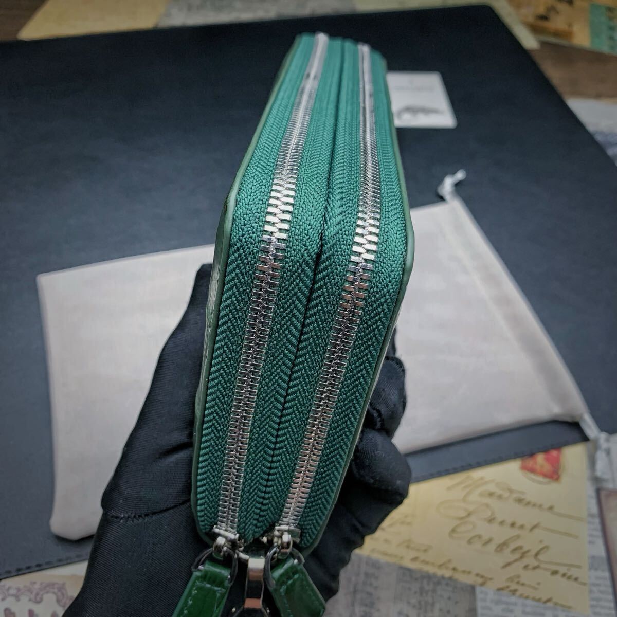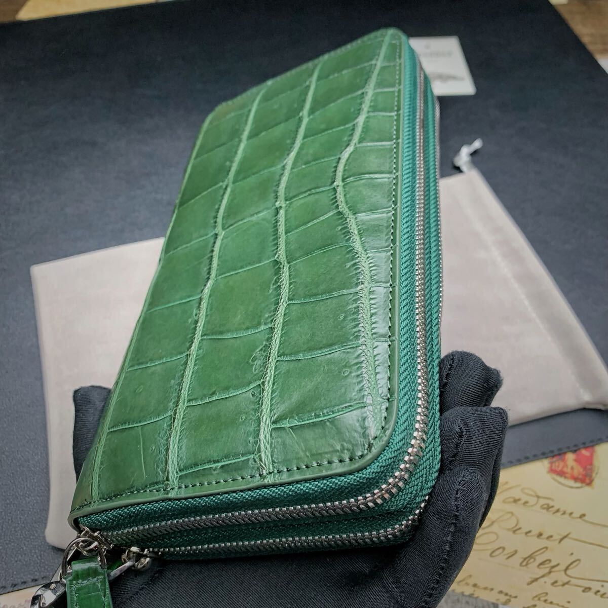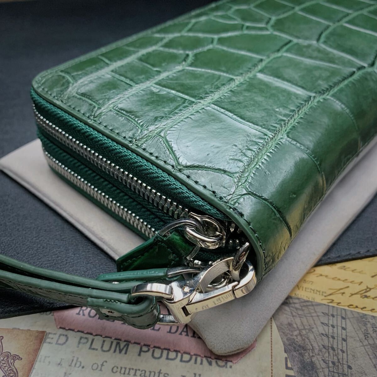 ・クロコダイルと呼ばれている品種のワニ革は人気が高く、独特の模様と凹凸が魅力で、高級ブランド品を中心にクロコダイルが多く使われています。今回はワニ革の代表格である『シャムクロコダイル』のセンターカット背中革のラウンドファスナー財布を出品します。