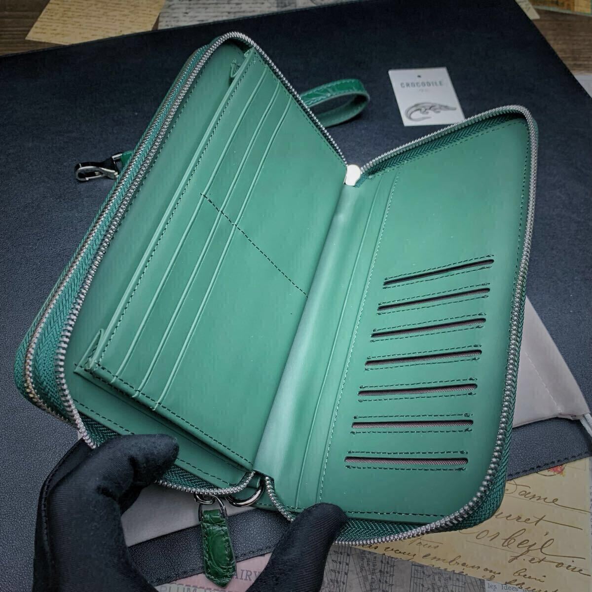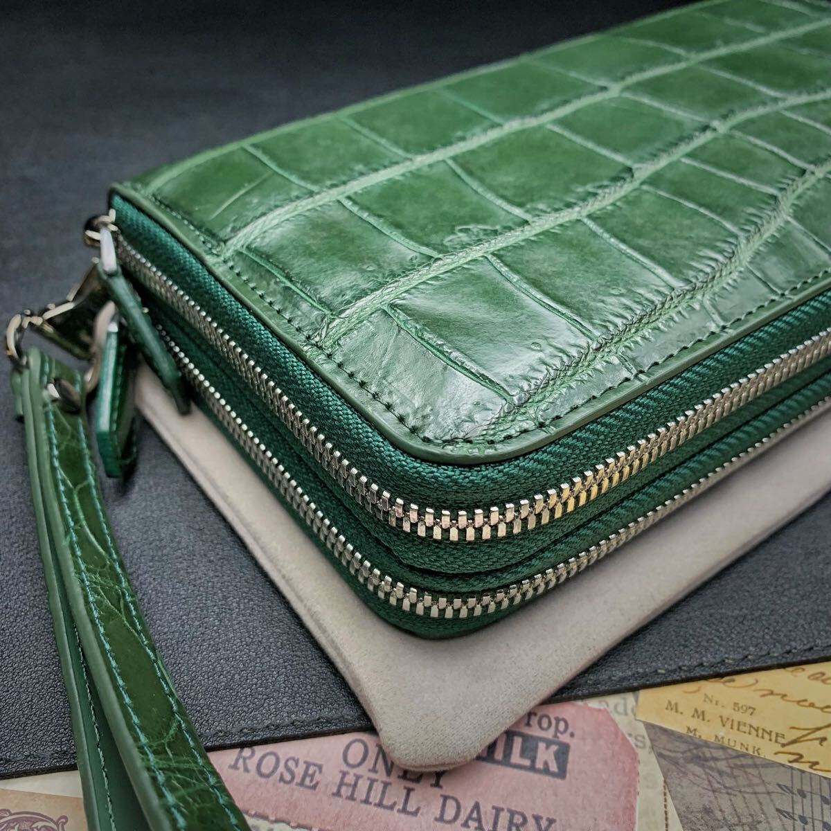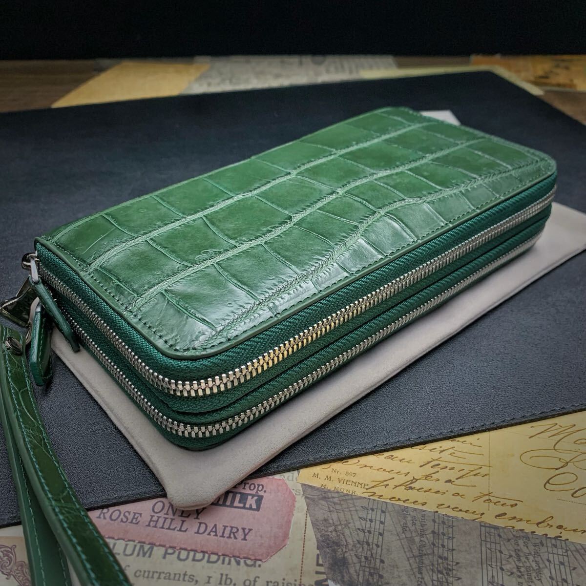 ・クロコダイルと呼ばれている品種のワニ革は人気が高く、独特の模様と凹凸が魅力で、高級ブランド品を中心にクロコダイルが多く使われています。今回はワニ革の代表格である『シャムクロコダイル』のセンターカット背中革のラウンドファスナー財布を出品します。