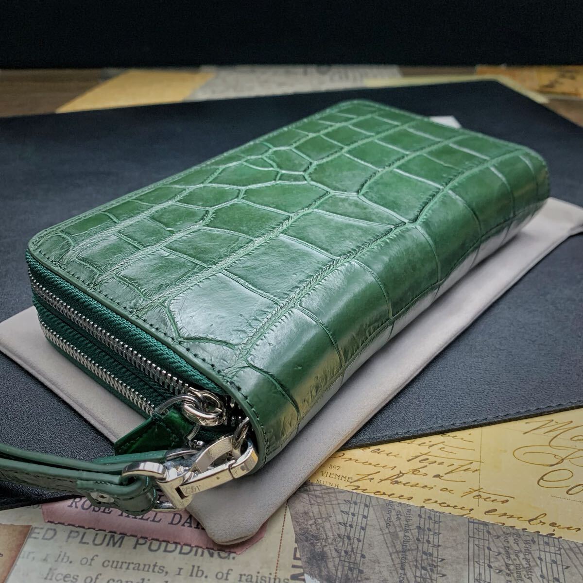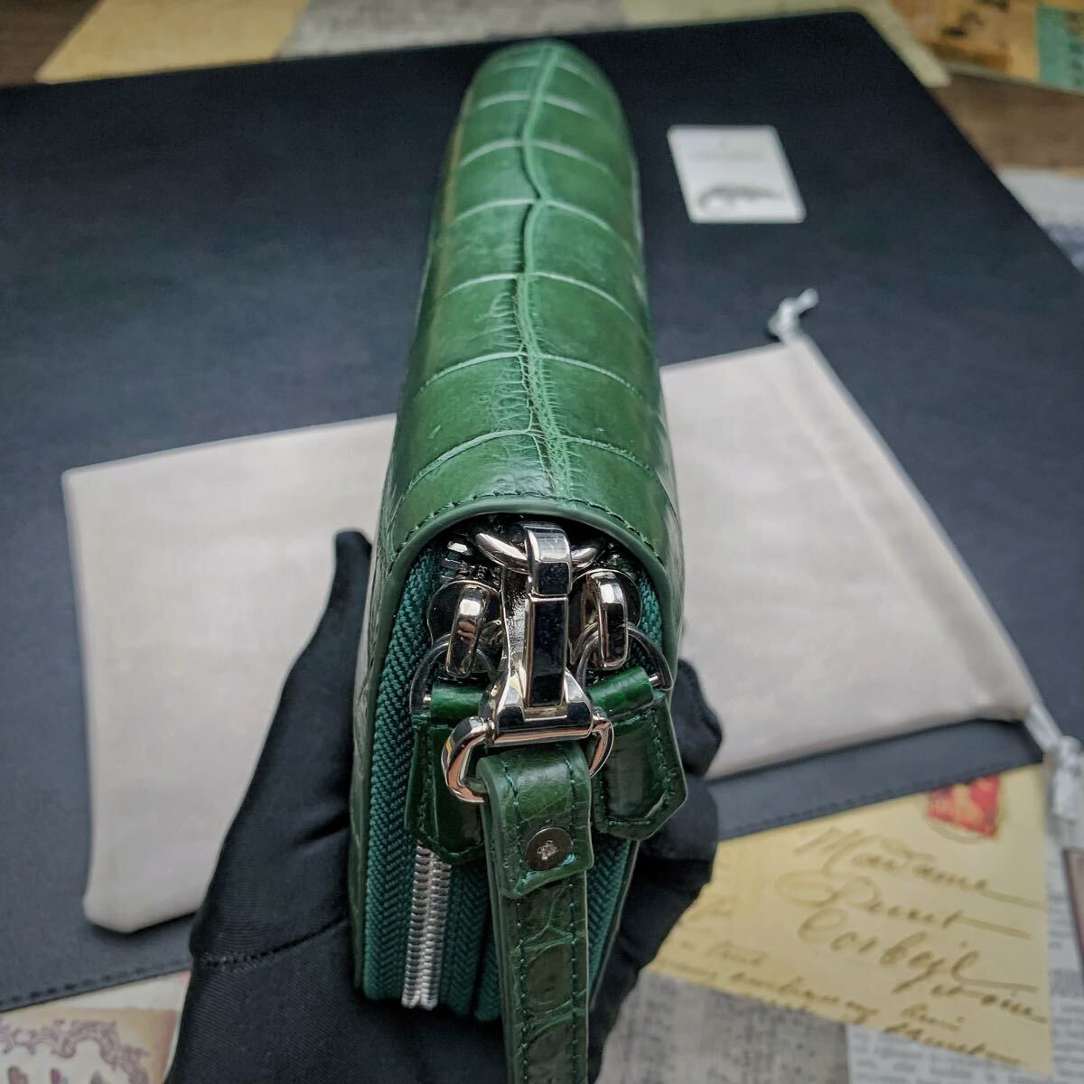 【実物撮影】新品 クロコダイル メンズ 長財布 ラウンドファスナー 未使用 送料無料 腹革 ワニ ダブルファスナー 長財布