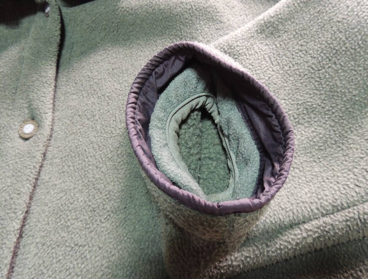 ★ こちらはUSED品です。 フリース生地特有の擦れによる着用感や小傷は有ります。 他は特に気になるようなダメージや汚れは見当たりません。 但し,あくまでも中古品という事でご理解願います。 古着にご理解の有る方向きです。 ノー・クレーム&ノー・リターンでお願い致します。  ★ サイズ表記はSですが大きめです。 ★ 着丈は約74cmx肩幅は直線で約62cmx袖丈は約52cmx身幅は約62cm。 ★ 素材はポリエステル100%。 ★ しまいこんでいた為に生地に多少のシワが有ります。ご了承願います。 ★ お色は鶯色です。 ★ 外ポケットのタグは雪無です。