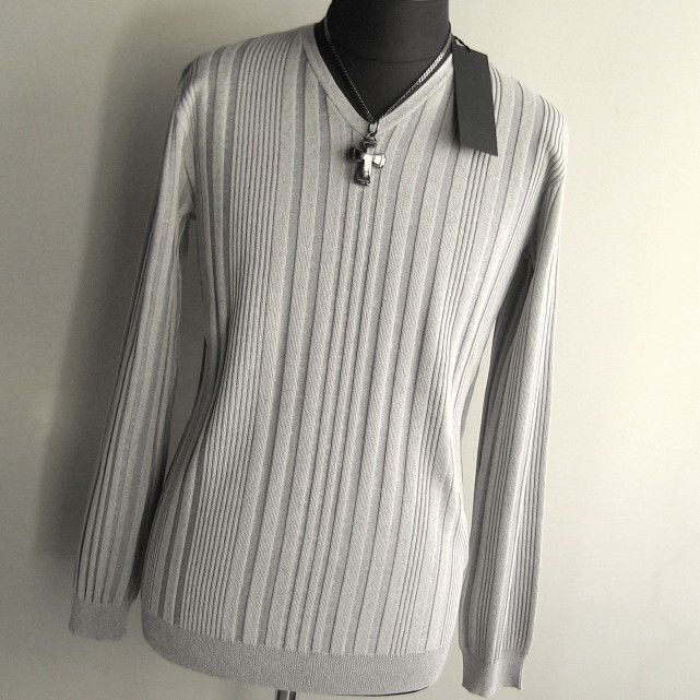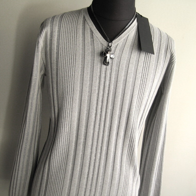 1.5万 新品 L トルネードマート ランダムテレコVネックニット グレー サンプル 645