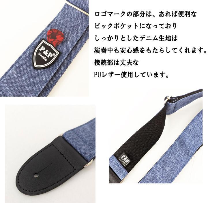 ギターストラップ P&P デニムコットン ピック3枚付 エレキギター アコースティックギター ベース用ストラップ ギター ストラップ P&P デニムコットン エレキギター/アコースティックギター/ベース用ストラップ ピック3枚付 サイズ:長さ 80cm〜136cmまで調節可能。 幅 約5cm カラー:ベージュ オーソドックスな華草模様のワンランク上のストラップです。 コットンデニムの素材のしなやかで丈夫な感触は演奏の邪魔をせず、 安心感をもたらします。 硬さの違うピック3枚つき(カラーが変わることがあります) 迅速発送させていただきます。 是非ご利用ください。