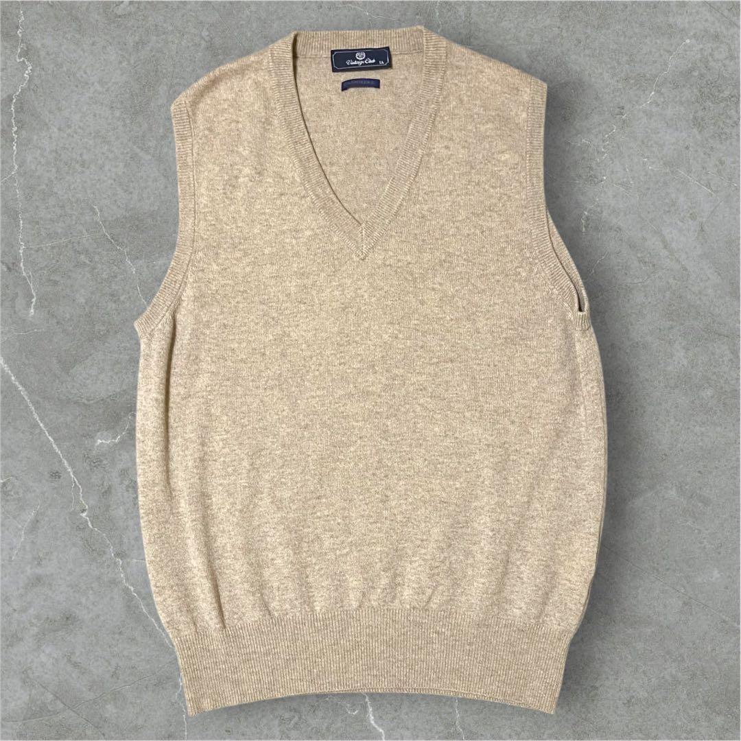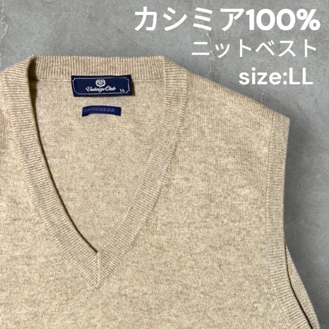 #CASHMERE#カシミヤ#カシミア#100%#ニット#ベスト#Vネック#LL#ベージュ#オフィス#カジュアル#ビジネス#メンズ#男性