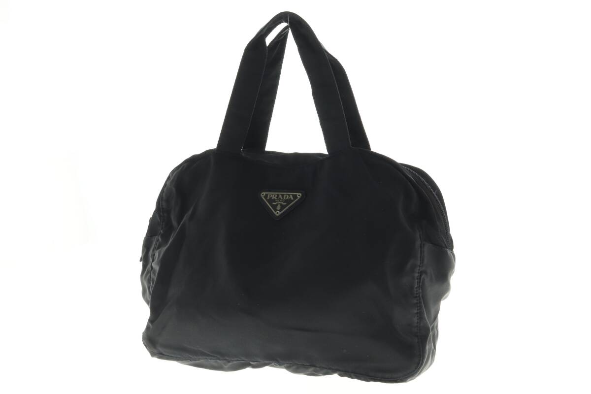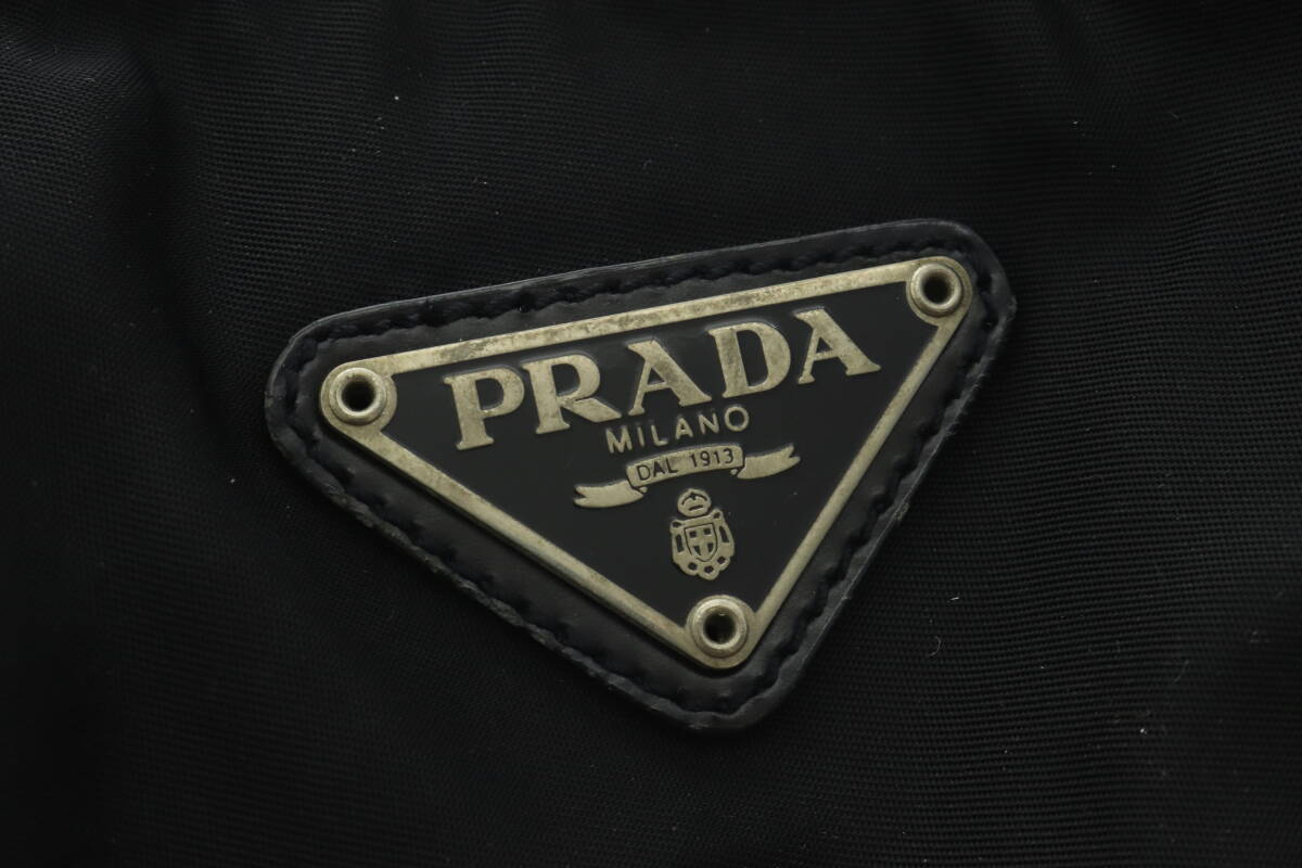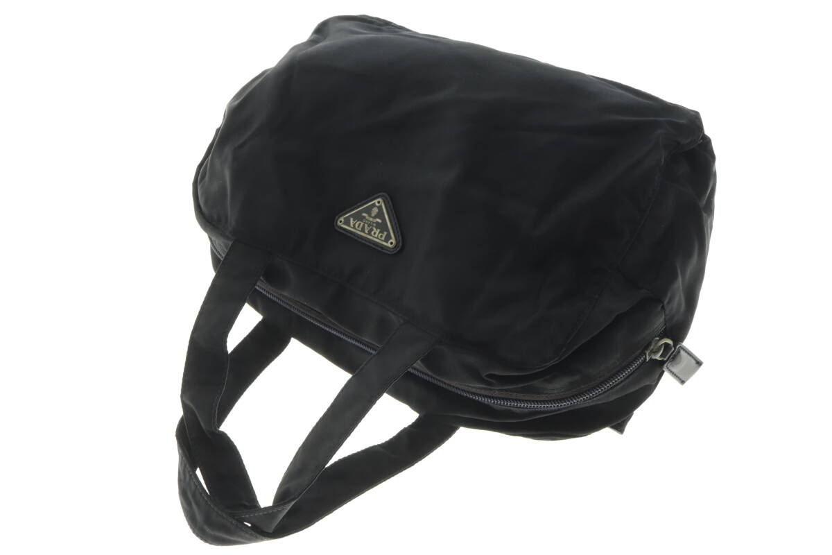 NPSJ7-11-22 PRADA プラダ ハンドバッグ 三角プレート 三角ロゴ ナイロン ミニボストンバッグ レディース ブラック 黒 中古