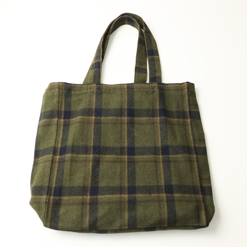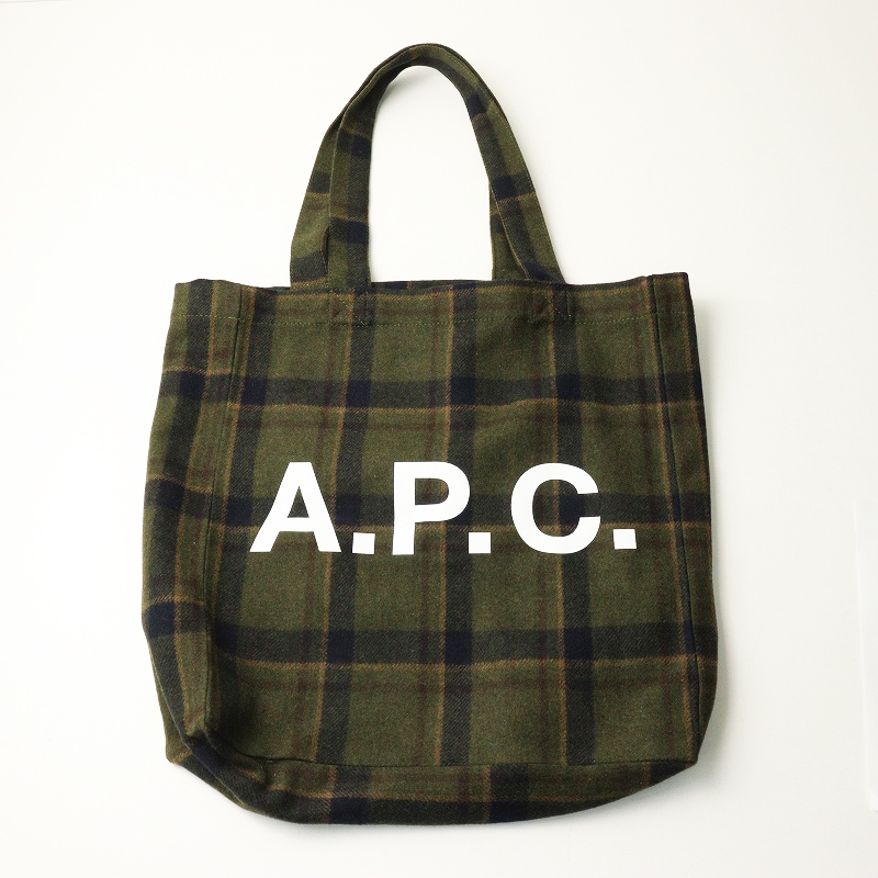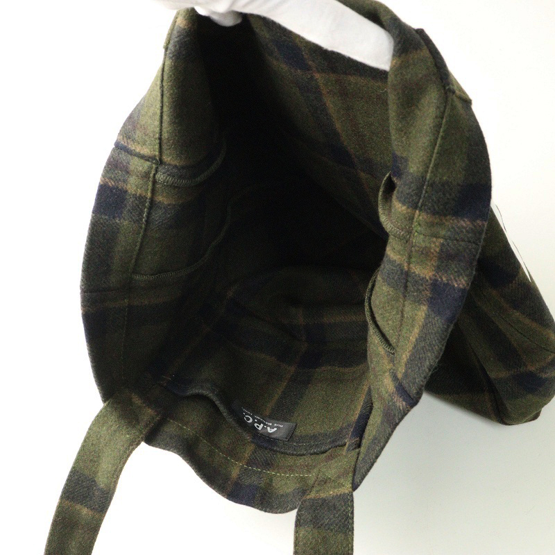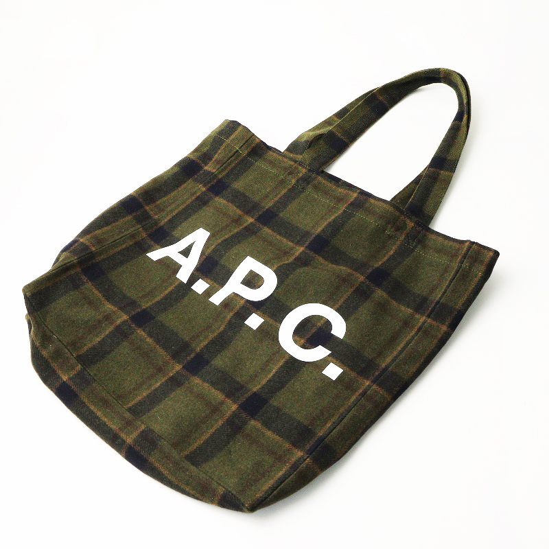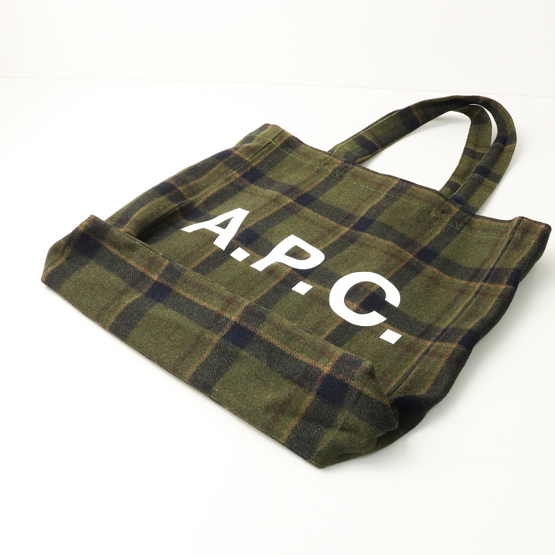 美品 アーペーセー A.P.C APC ウール ロゴプリント チェックトートバッグ カーキグリーン/カバン かばん【2400014445657】
