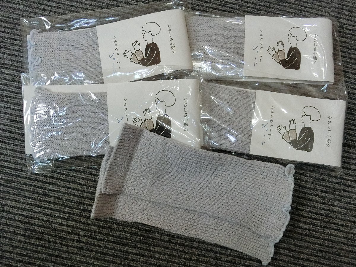 ◆やさしい心地のショートウォーマー/シルク86%/アームカバー/レッグカバー/冷え対策/グレー/5点セット/
