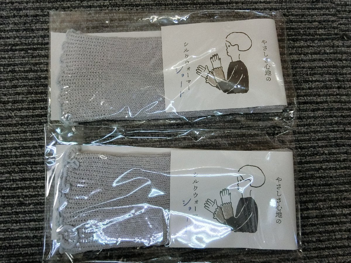 GY149-60)やさしい心地のショートウォーマー/シルク86%/アームカバー/レッグカバー/冷え対策/グレー/5点セット/