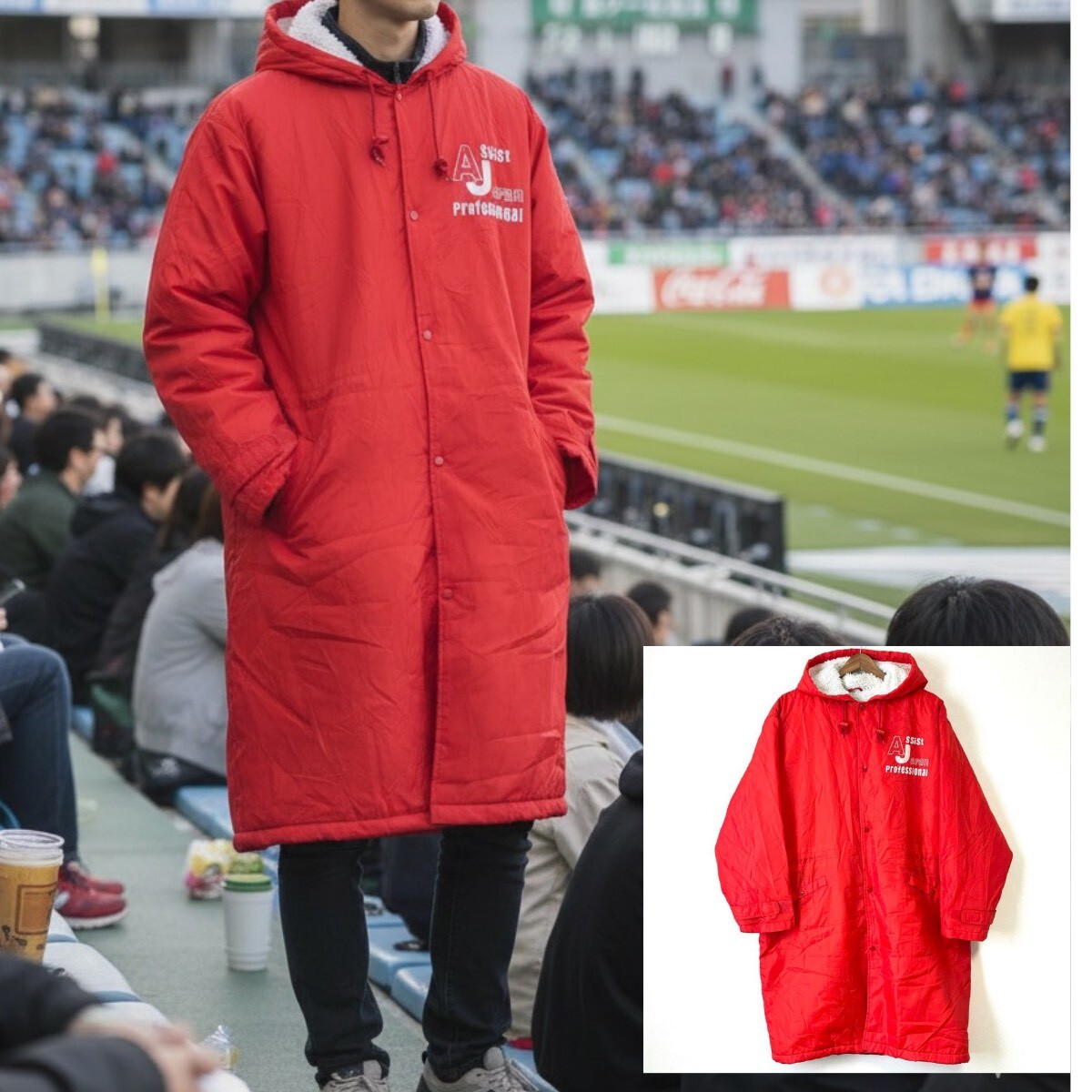 POWERFULL spirit のベンチコートです。裏ボアで暖かく、袖内側はキルティング素材になっているので脱ぎ着しやすいです◎ウエストを絞って着用可能◎スポーツ時やアウトドアなどでの体温調節・防寒対策にオススメです!
