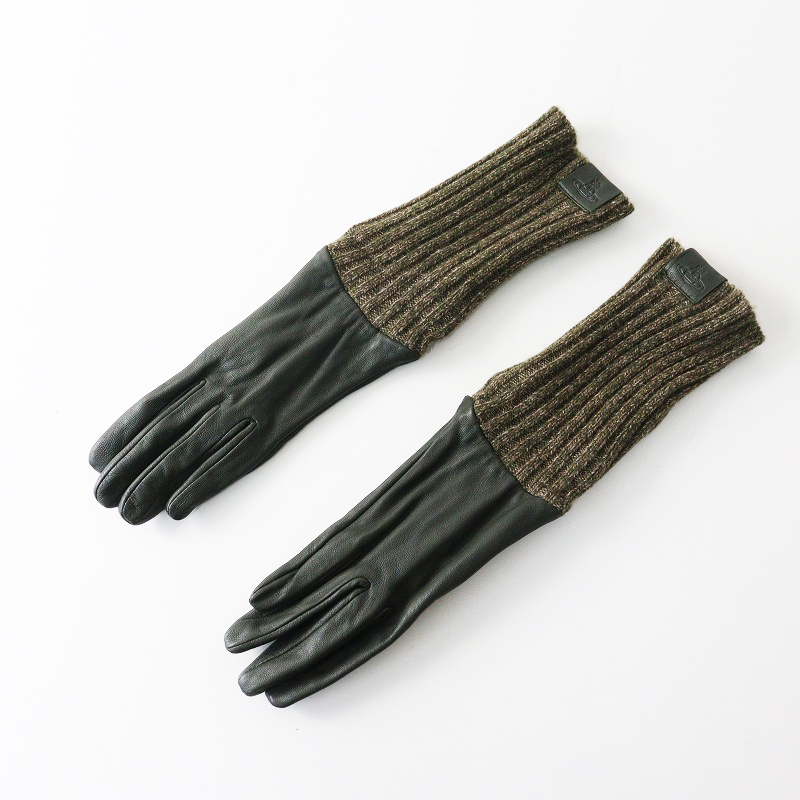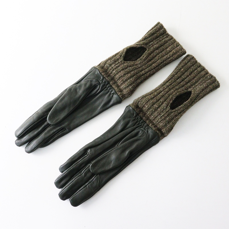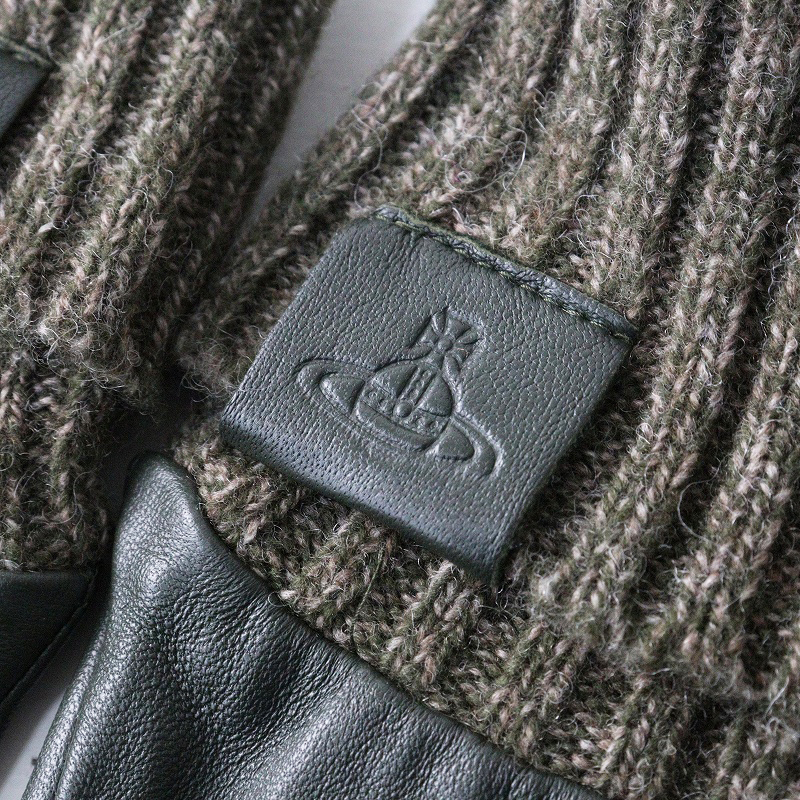 美品 ヴィヴィアンウエストウッド Vivienne Westwood ニットxレザーグローブ\ダークグリーン ドッキング 手袋【2400014734133】