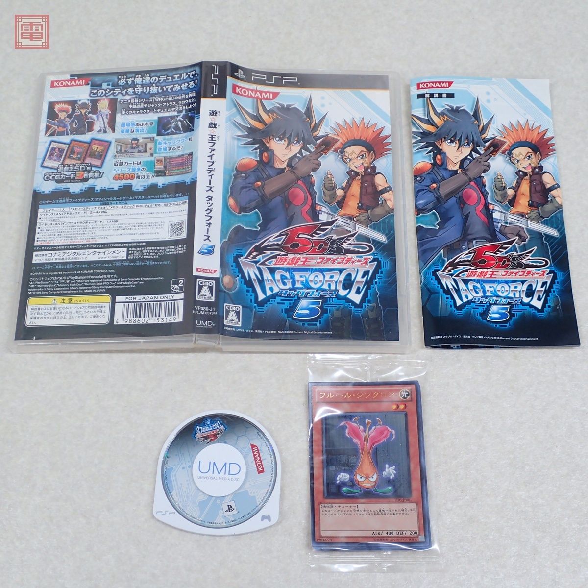 動作保証品 PSP プレイステーションポータブル 遊☆戯☆王ファイブディーズ タッグフォース5 KONAMI コナミ 箱説/カード付 こちらの商品は動作保証品となりますので、一週間の動作保証をお付けします。 ■ケースにスレ、角スレ、汚れ、ヤケ、キズがあります。 ■取扱説明書にスレ、角スレ、汚れ、ヤケ、キズがあります。 ■盤面にキズはありますが再生に支障はありません。 ■上記以外は未チェックです。 ■写真のものが全てです。付属物の有無や状態については写真からご判断ください。 ■付属物については細かいチェックはしておりませんので、万が一、欠品があったり余計な物が入っていたとしてもご了承ください。 ■商品到着後、当店の保証期間中は、商品及び箱や取説、付属品などを1つでも廃棄や破損をしないようにお願い致します。廃棄や破損をした場合、商品に問題があった場合でも対応や返金などの対処ができなくなります。 ■商品によりますが、発売されてから10年以上経過している中古品である事をご理解頂いた上でご入札をお願い致します。なお、新品や美品、また特記事項がある場合は別途明記します。 | |||
