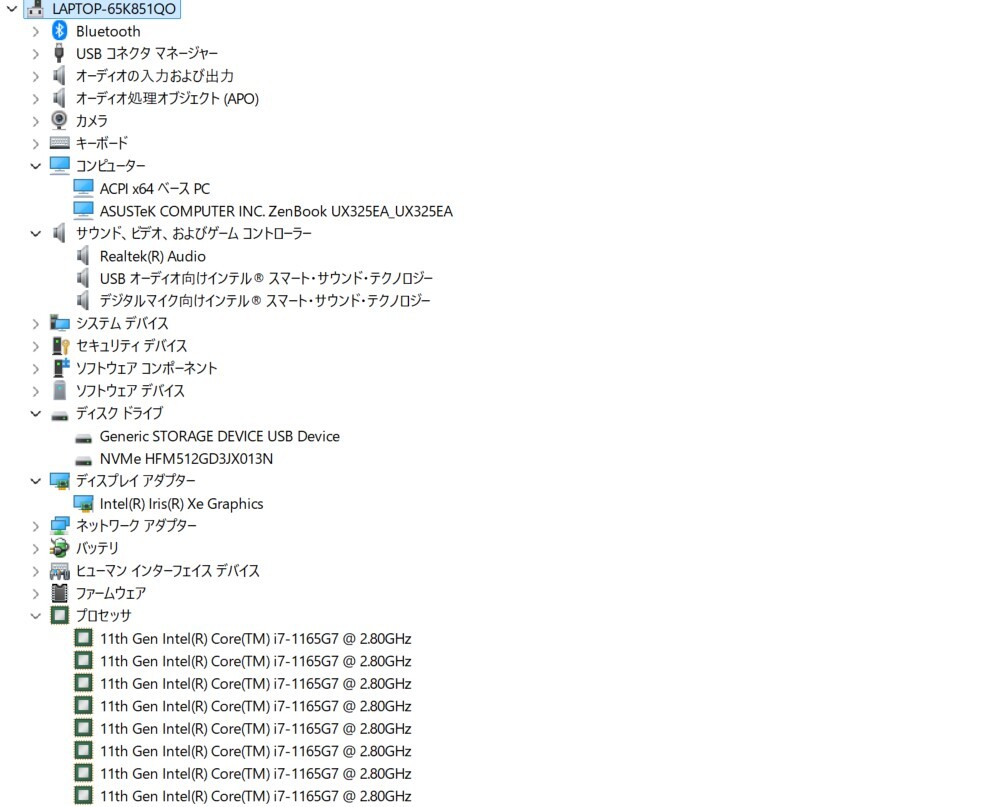 ・CPU:Intel Core i7-1165G7 2.80GHz(2.80GHz)