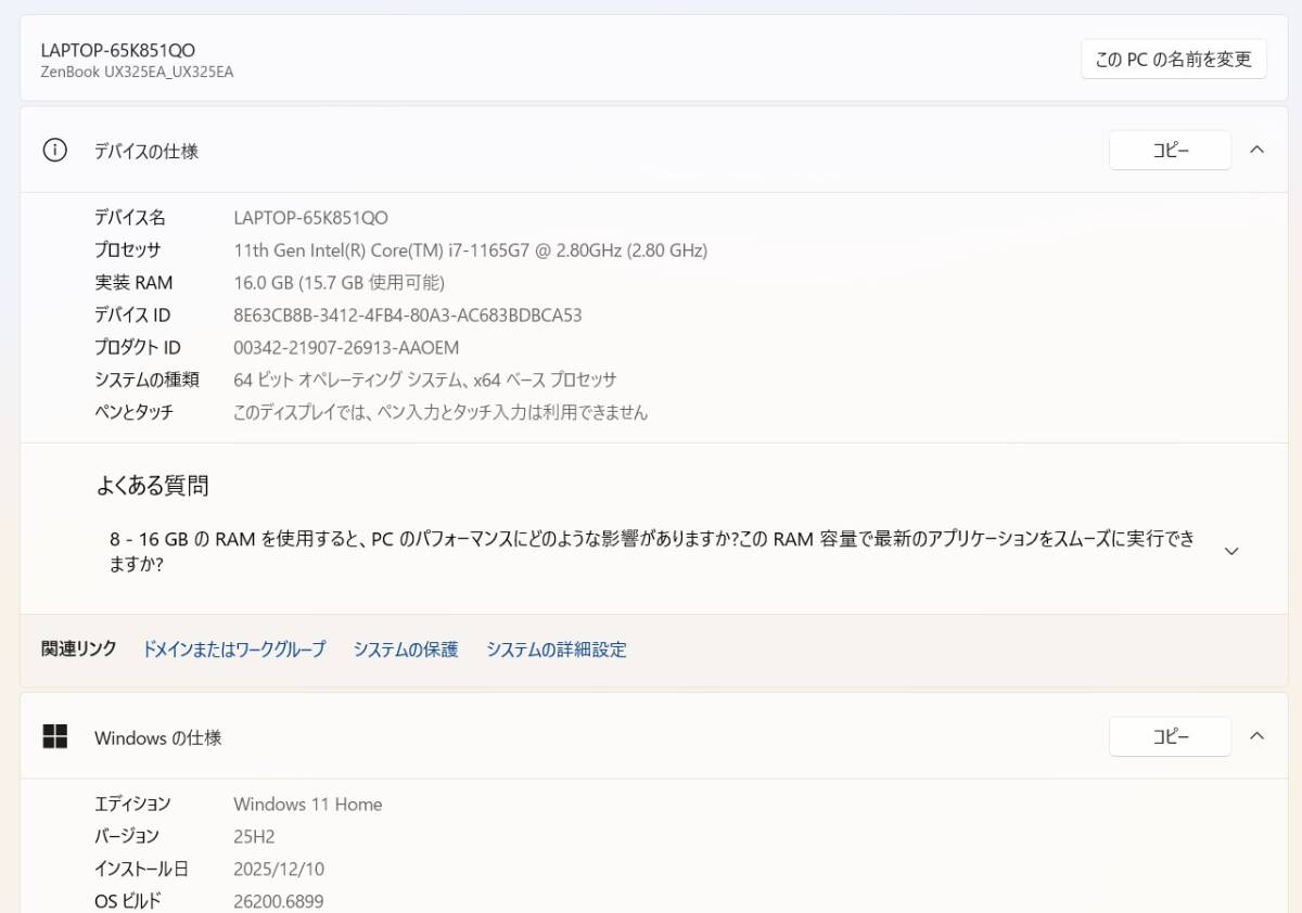 ・OS:Windows11 Home/25H2(ライセンス認証・Windows update済)
