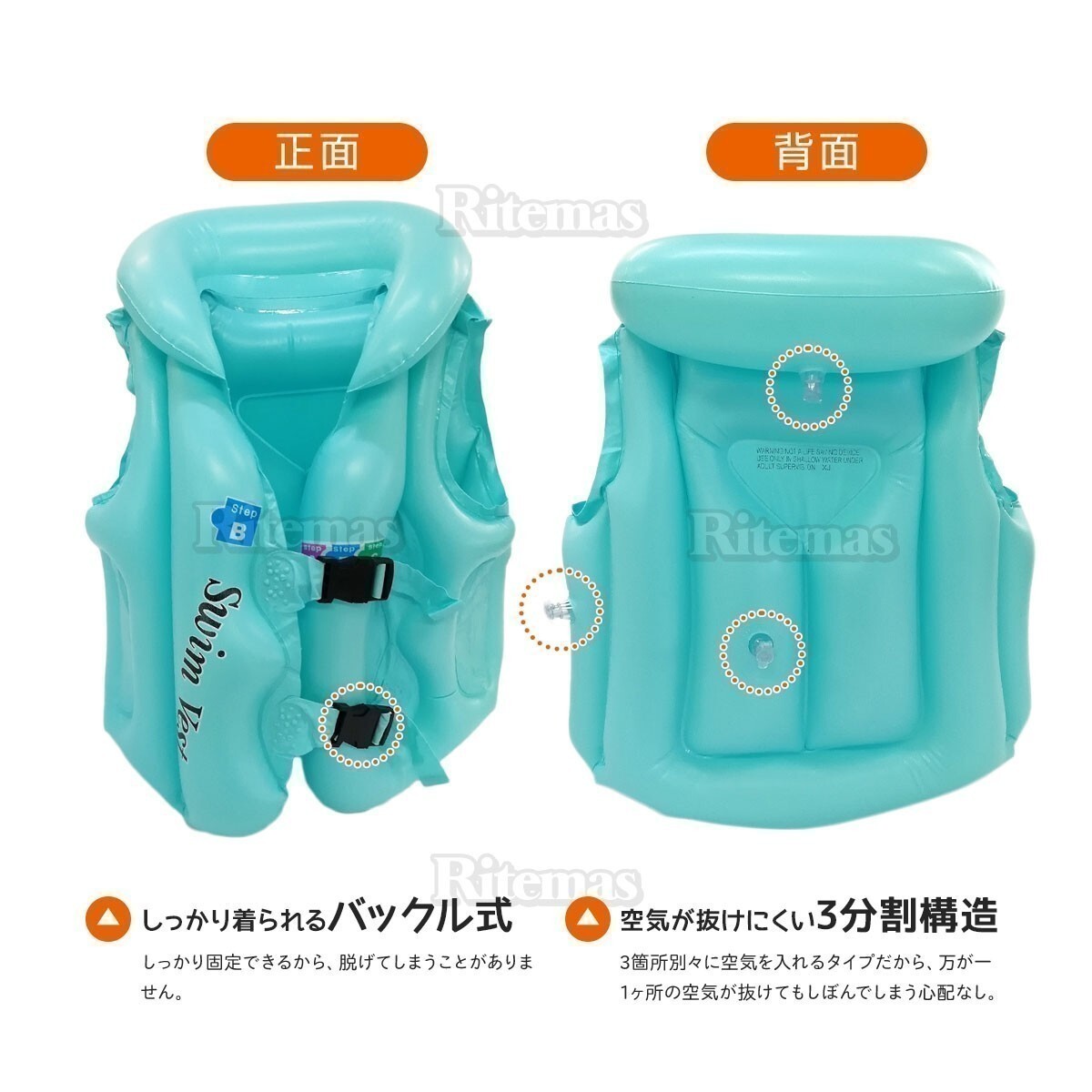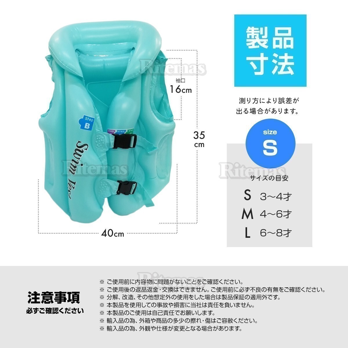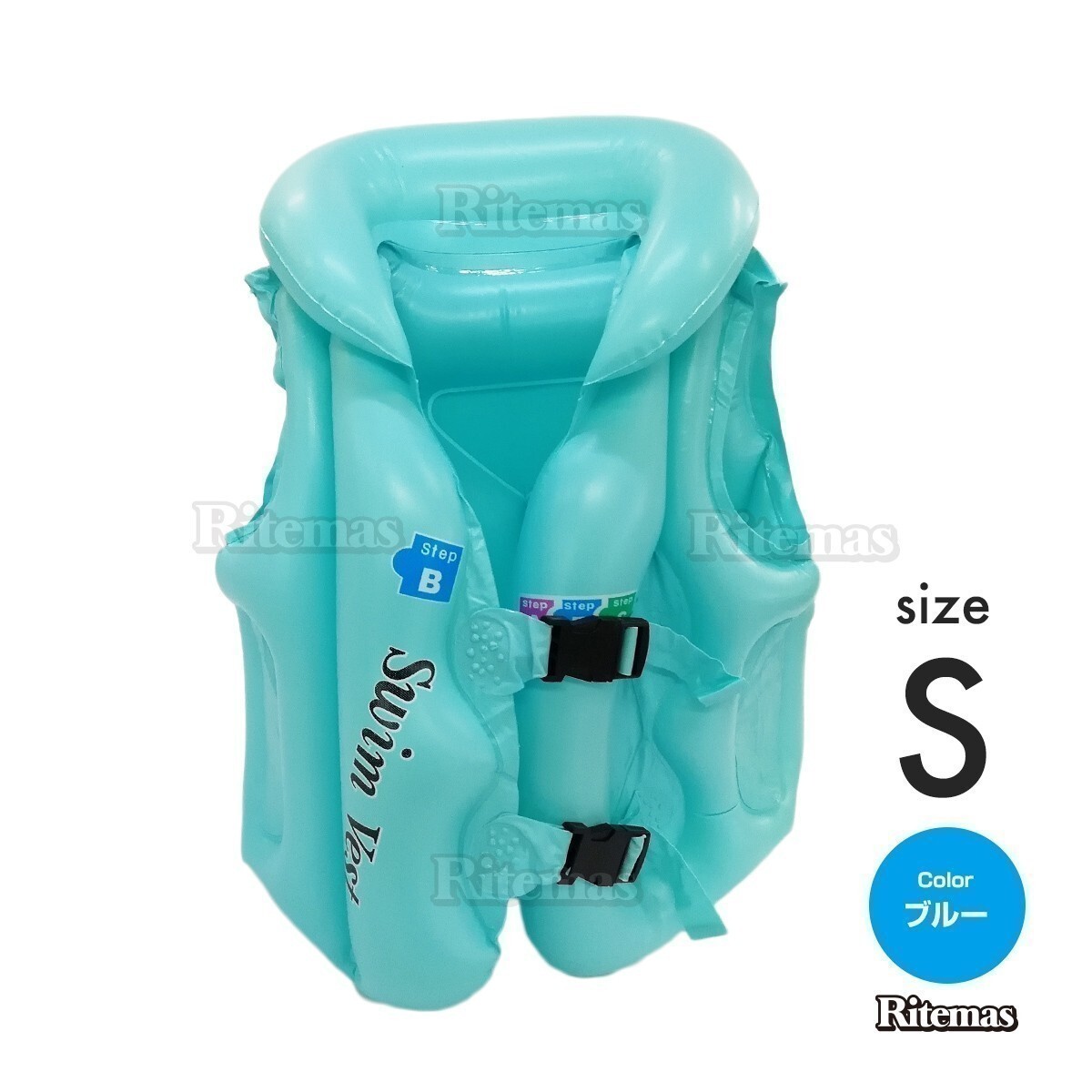 浮き輪型 ライフジャケット 子供用 ベスト ジュニア キッズ 幼児 こども スイミング プール 海水浴 水遊び ブルー 青 Sサイズ 3~4歳推奨