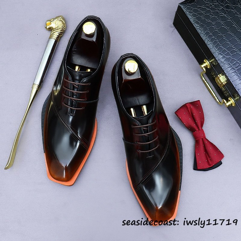 定価9万★超希少 本革 ビジネスシューズ メンズ レザーシューズ 職人手作り 切替 上質牛革 革靴 紳士靴 フォーマル 結婚式 珈琲色 24.5cm