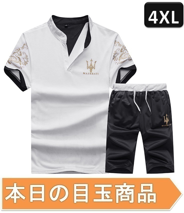 ☆今日の目玉商品☆ジャージ 上下 セット 半袖 部屋着 ルームウェア スポーツウェア セットアップ ホワイト×ブラック 4XLサイズ 【241】
