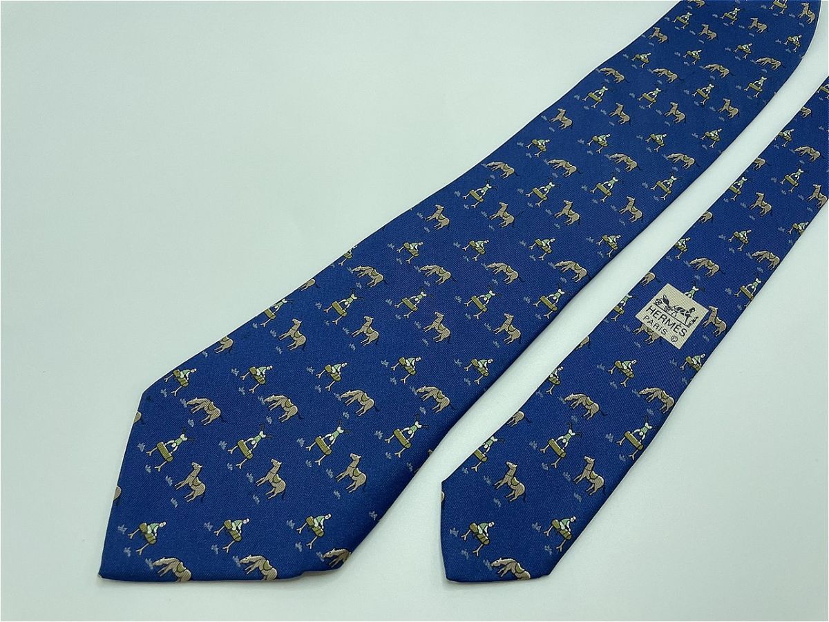 【美品】HERMES エルメス 動物柄 ネクタイ 3本以上 送料無料 メンズ ブルー 1104017