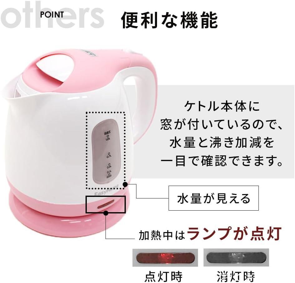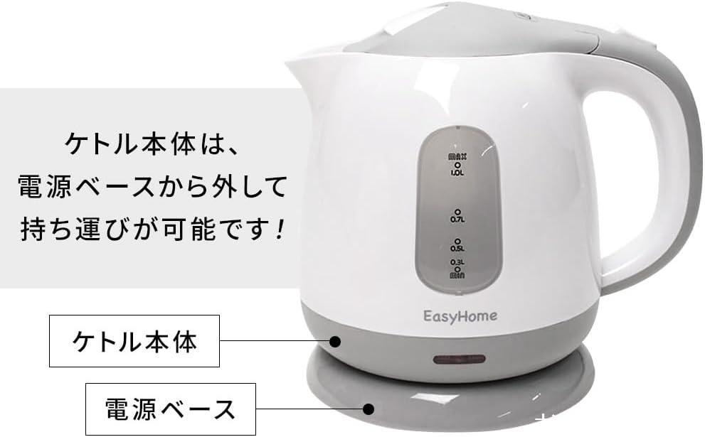 ヒロコーポレーション ヒロ・コーポレーション 中身が見やすい 電気ケトル 保証付き 空焚き防止機能付き 1.0L コンパクト グレ