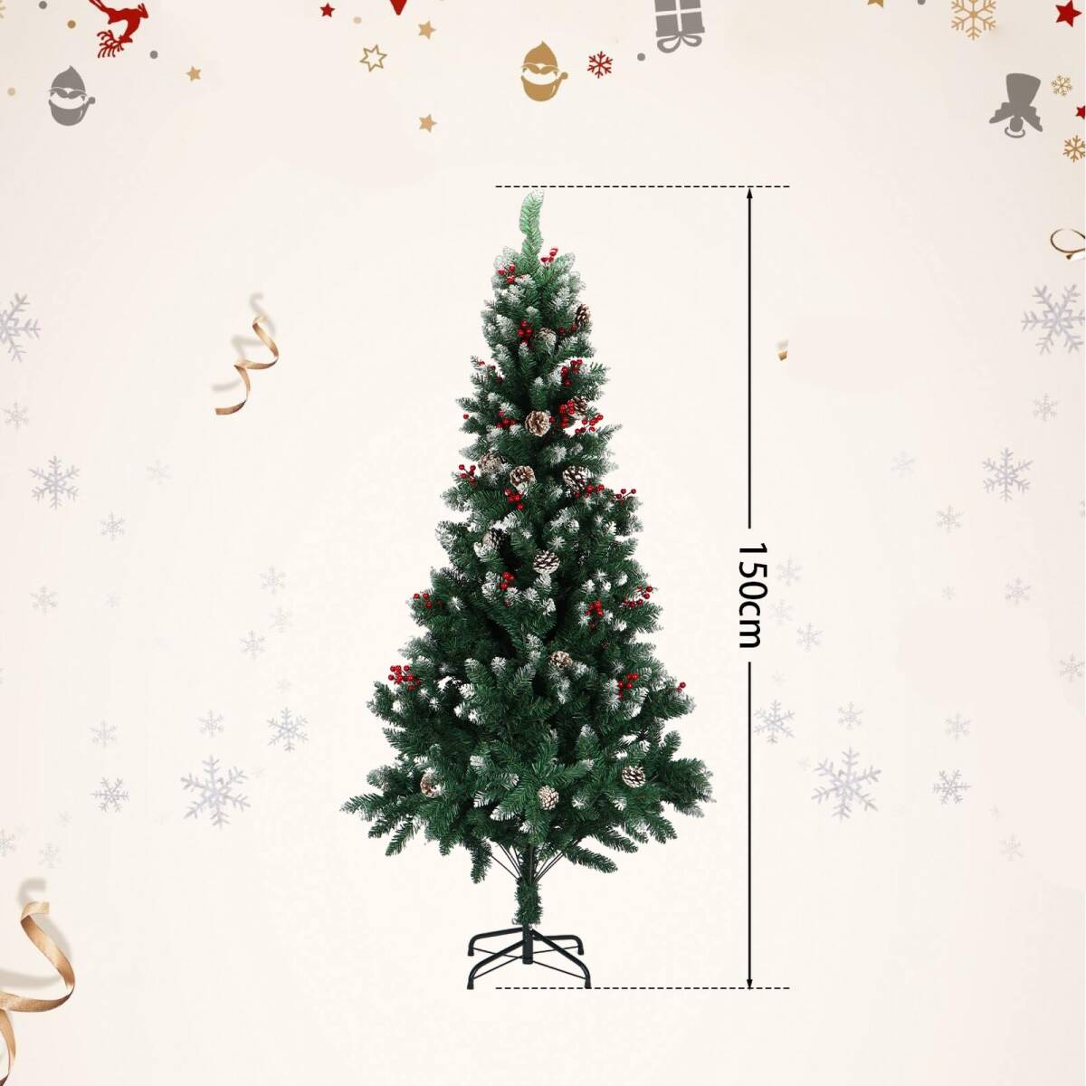【商品仕様】ツリー高さ:約150cm。重量:4.95kg。素材:PVC。パッケージの内容:本体、18個赤い実、24個松ぼっくり、4脚型のベース。使用中に何か問題がありましたら、いつでも連絡してください。私たちはご問題を解決するために努力します。