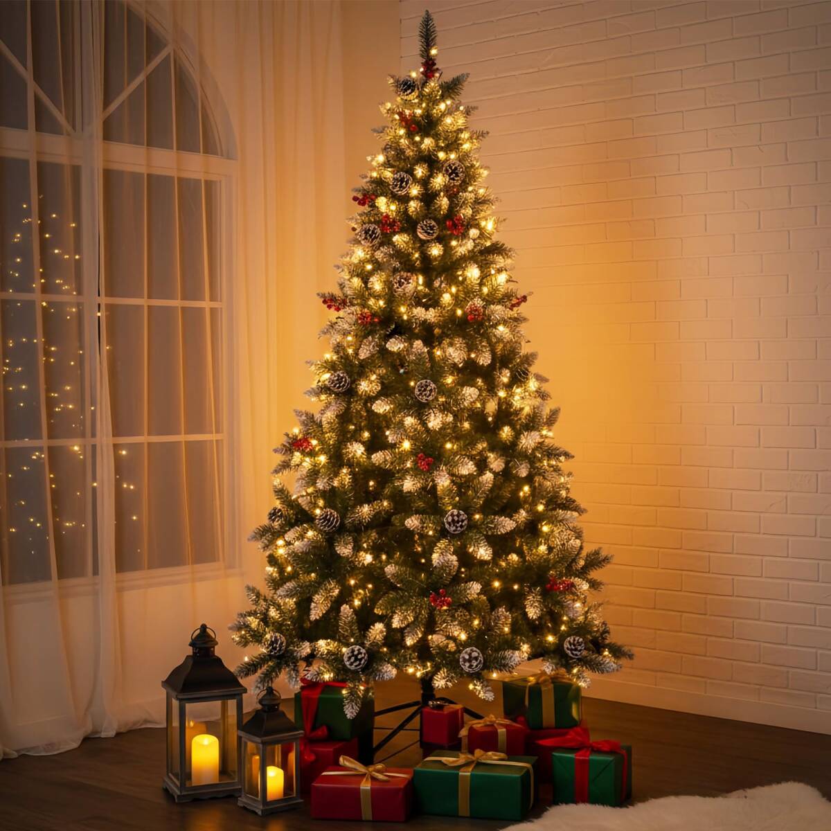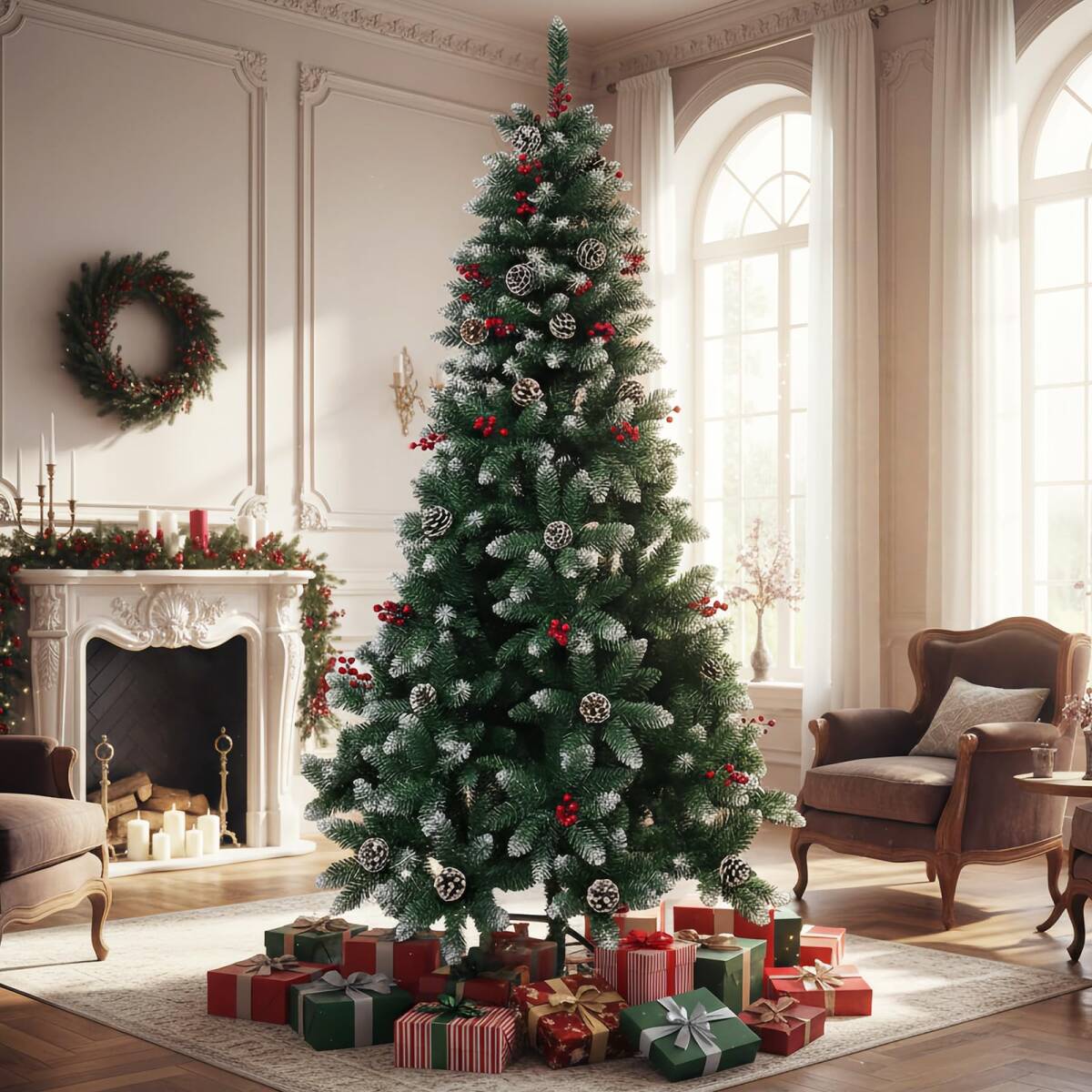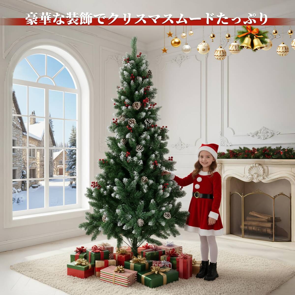 クリスマスツリー 150cm Christmas tree 赤い実と松ぼっくり付き 高濃密度 北欧風 クリスマスツリー 雪化粧 おしゃれ 高級 クリスマス飾り パーティー装飾 プレゼント(150cm)