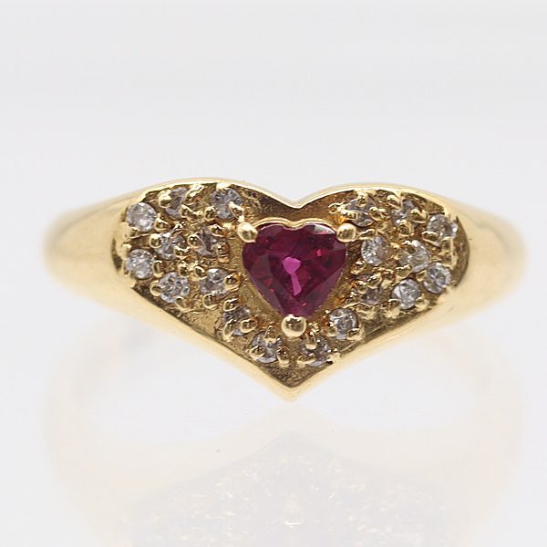 1円 美品 K18 ルビー ダイヤ ハートモチーフ 0.16 2.6g 11号 リング アクセサリー ジュエリー 4151400 11GTT AKO KTU