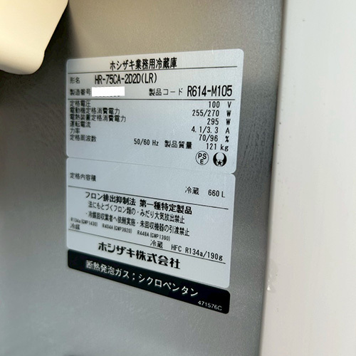 【業界最長1年保証】縦型冷蔵庫 ホシザキ HR-75CA-2D2D 業務用 中古/送料別途見積