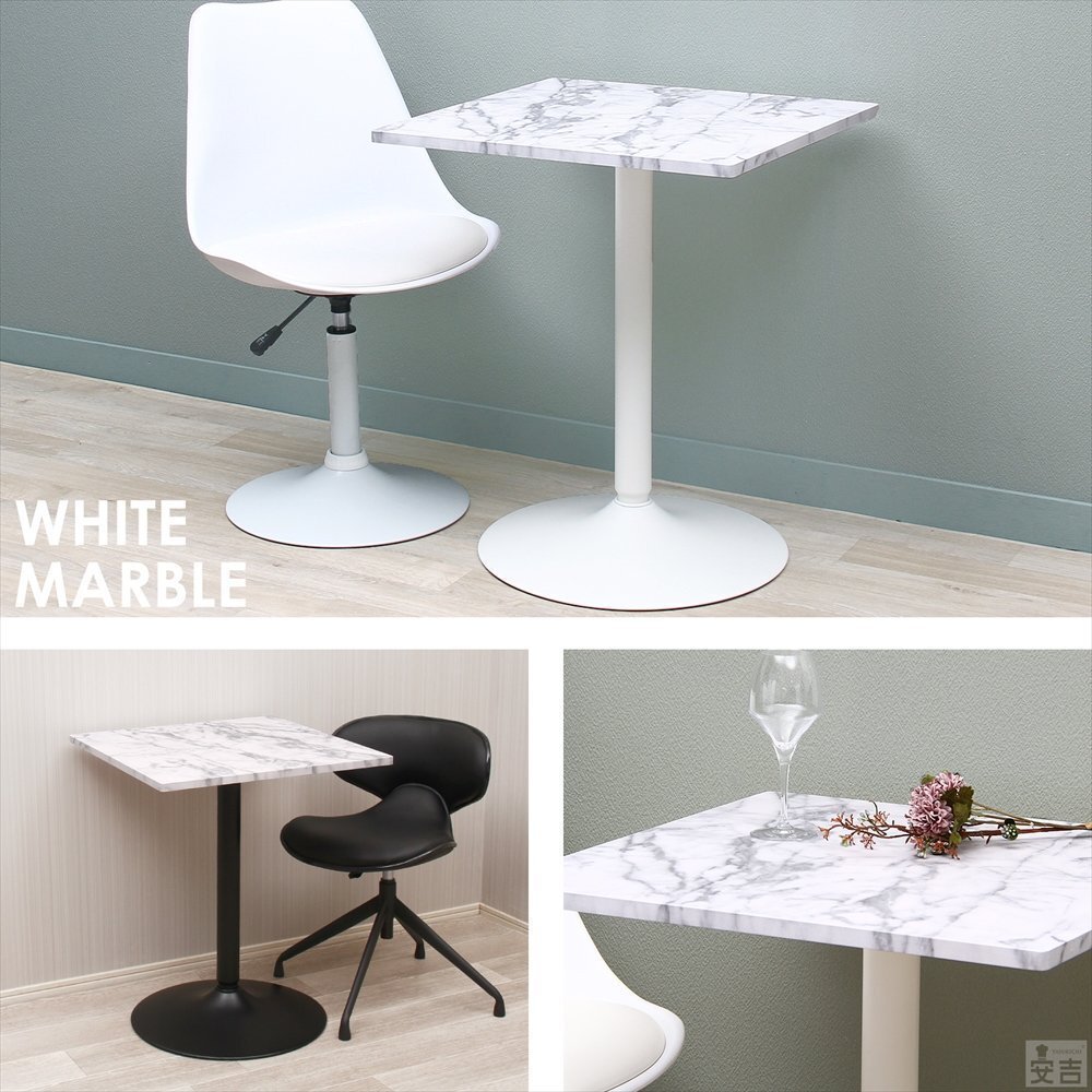 | 即納 カフェテーブル 角型 CT-F60S ホワイトマーブル 黒脚タイプ |