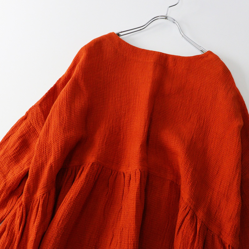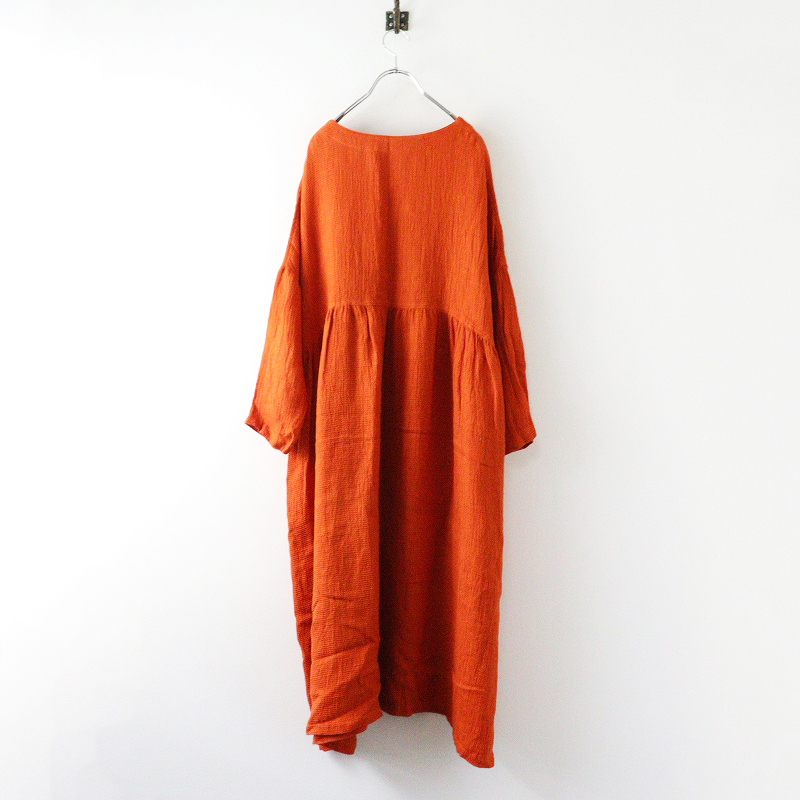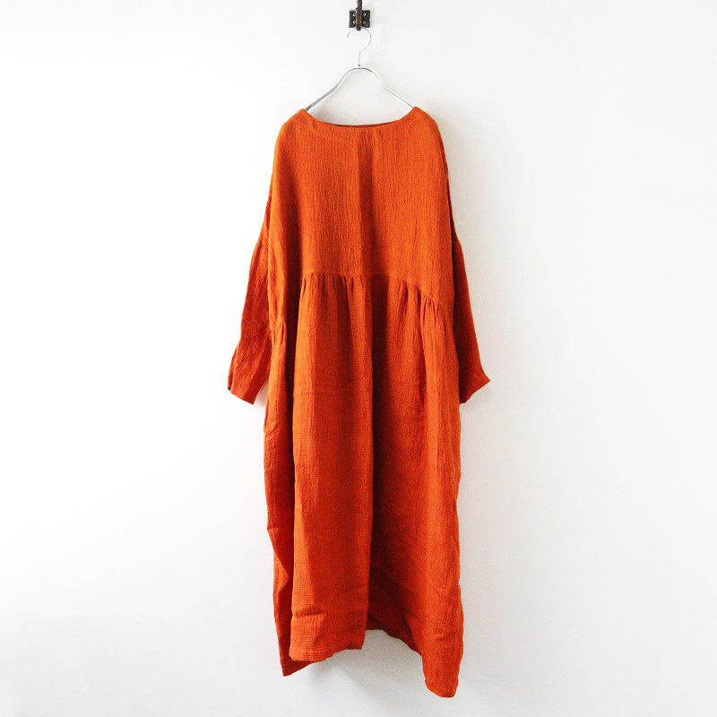 イチアンティークス ICHI Antiquites リネンワッフルワンピース |オレンジ トップス ドレス ノーカラー【2400014704556】