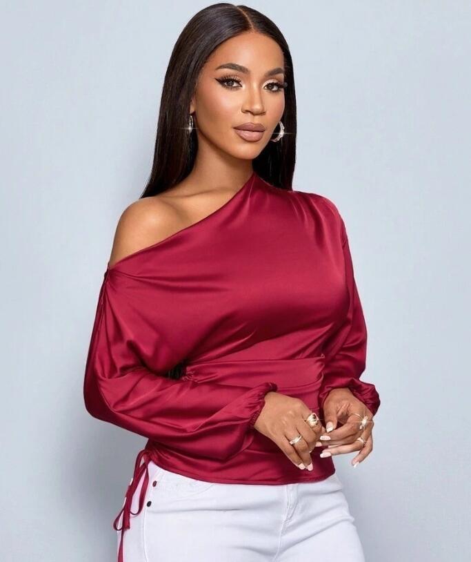 303 カットーladiesレディース ◇ 綺麗めシルエット ◇  光沢  red