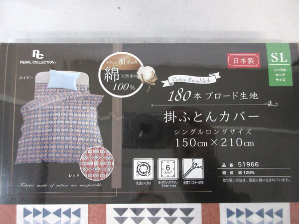| 内 容 | ■掛布団カバー シングルロング ■サイズ:150×210cm ■日本製 ・レッド×1点 ・ブルー×1点 |