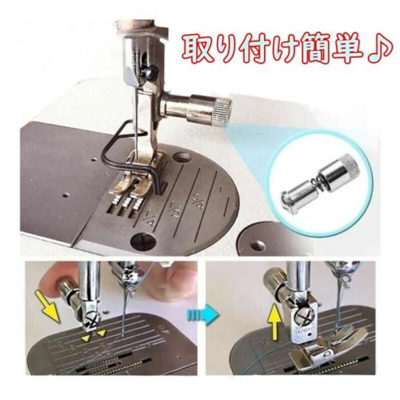 ミシン押えのネジの部分に取り付けるとドライバーで押えの止めネジを緩めなくてもワンタッチでミシンの押え交換ができます!
