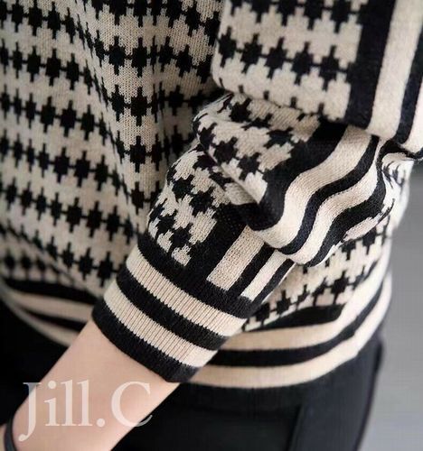 新品【送料185円】伸縮◎バイカラー配色*通勤オフィス対応◎デザイン ニットプルオーバー4242.BLACK