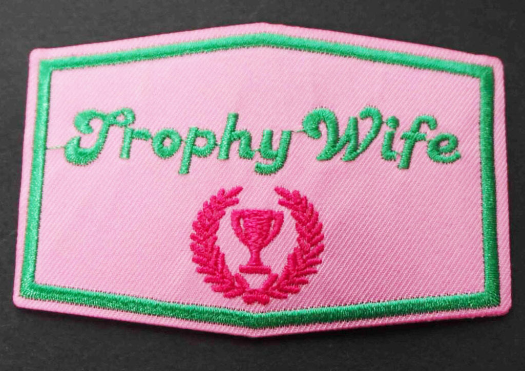 『Trophy Wife トロフィーワイフ  年上富豪男性&年下美女 皮肉 ユーモア』刺繍ワッペン(パッチ)
