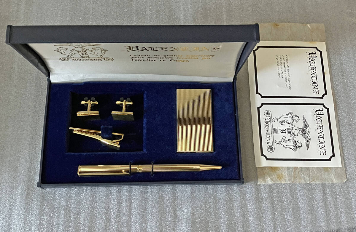 VALENTINE バレンタイン K18GP 金メッキ カフス & ネクタイピン & ガスライター & ボールペン