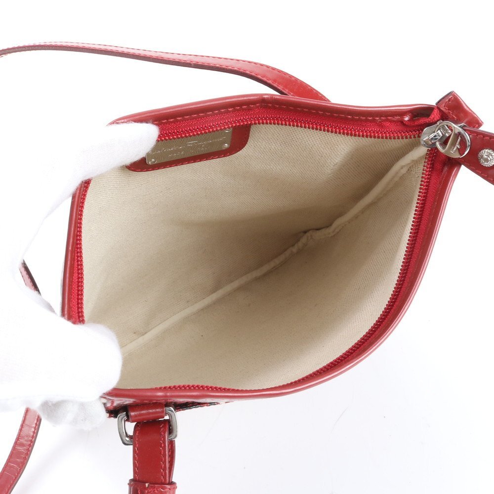 1円■極美品■サルヴァトーレフェラガモ■レザー ショルダーバッグ 斜め掛け クロスボディ シルバー 金具 レディース EEE DA18-10