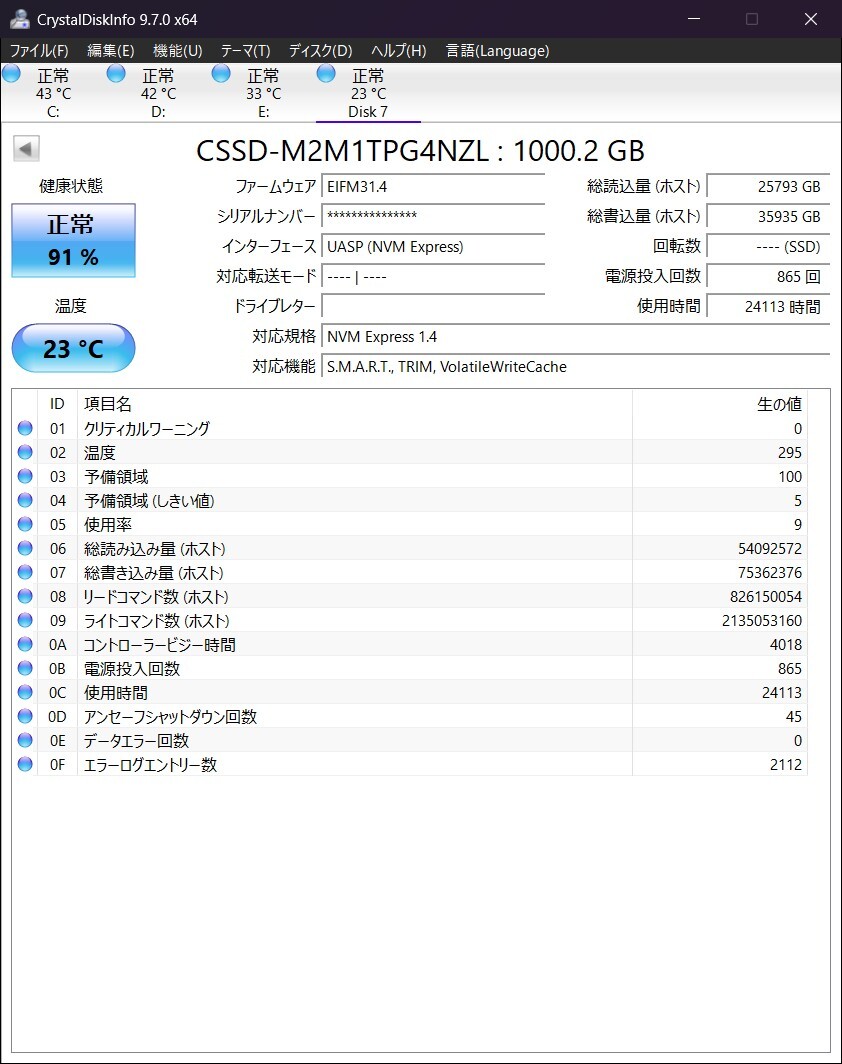 CFDのNVMe SSD 「CSSD-M2M1TPG4NZL」です。