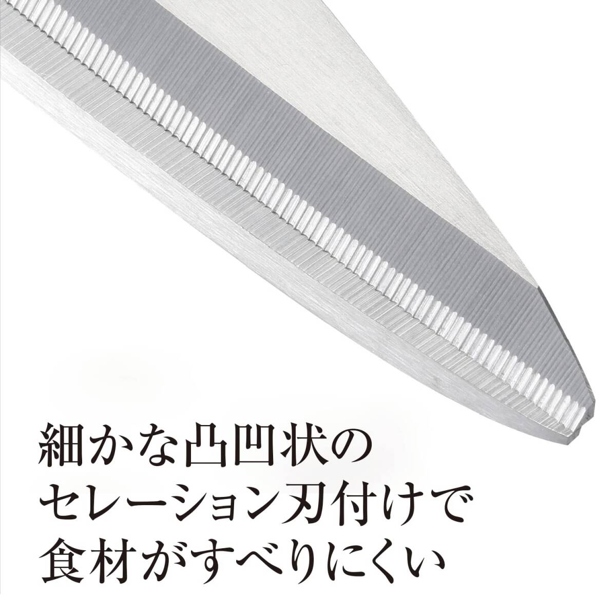 ・セレーション刃付けによる細かな凹凸状の刃により、切るものが滑りにくくなっています。
